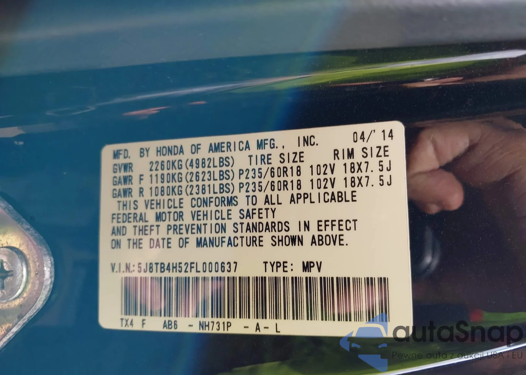 • VIN 5J8TB4H52FL000637