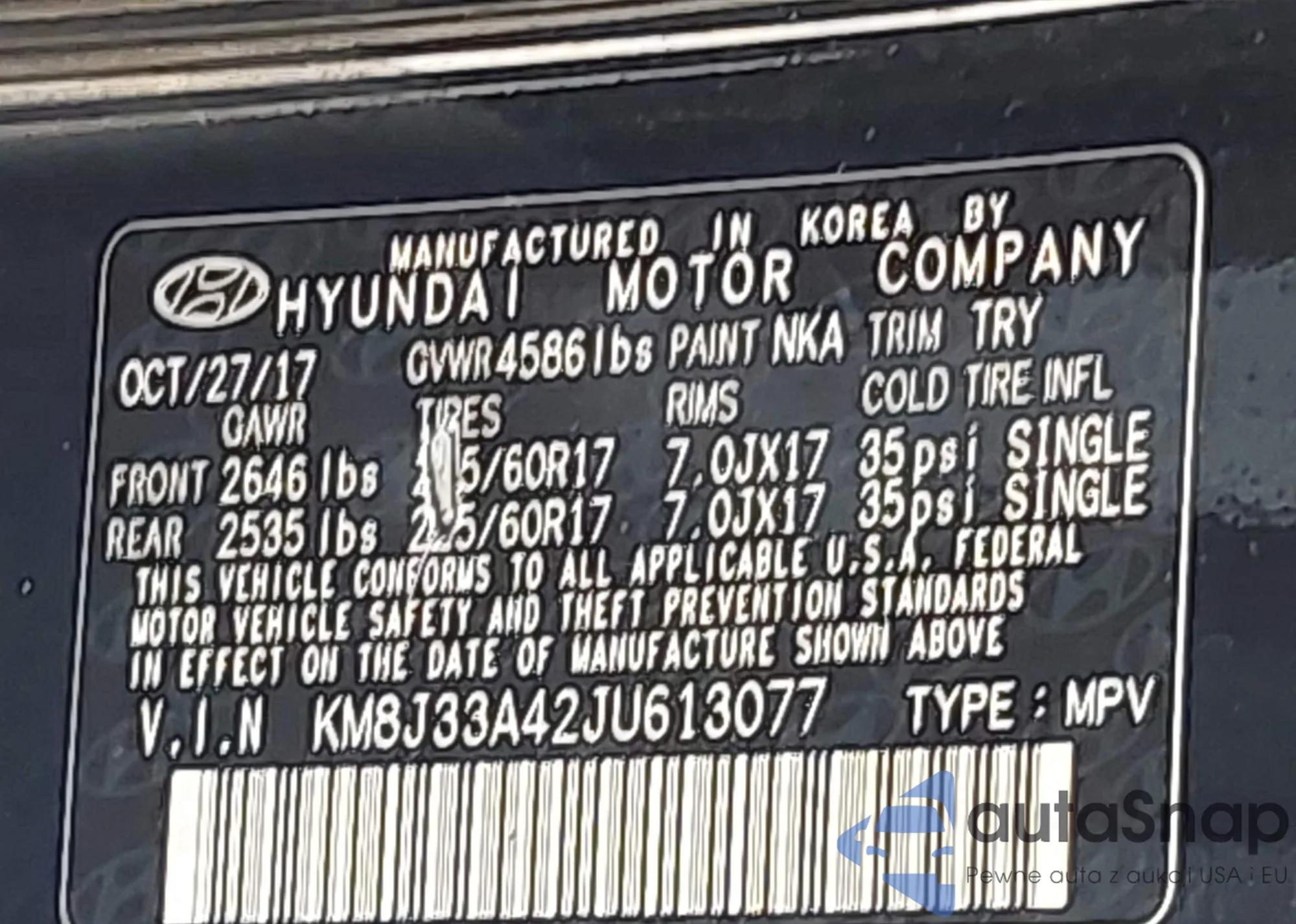• VIN KM8J33A42JU613077