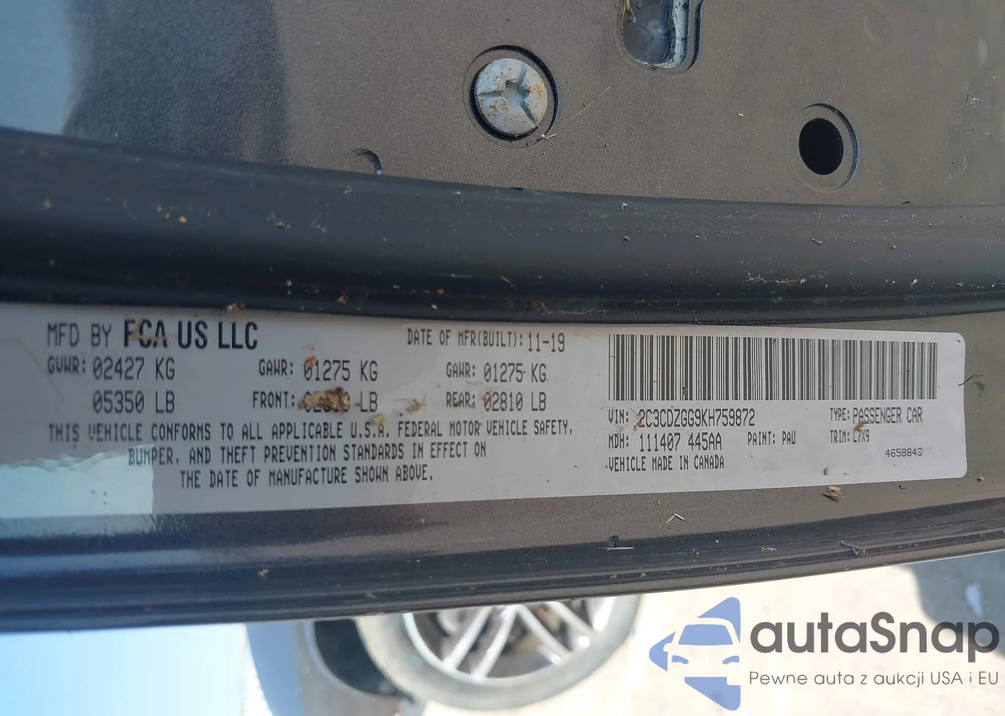 LOT: 43319625 VIN: 2C3CDZGG9KH759872