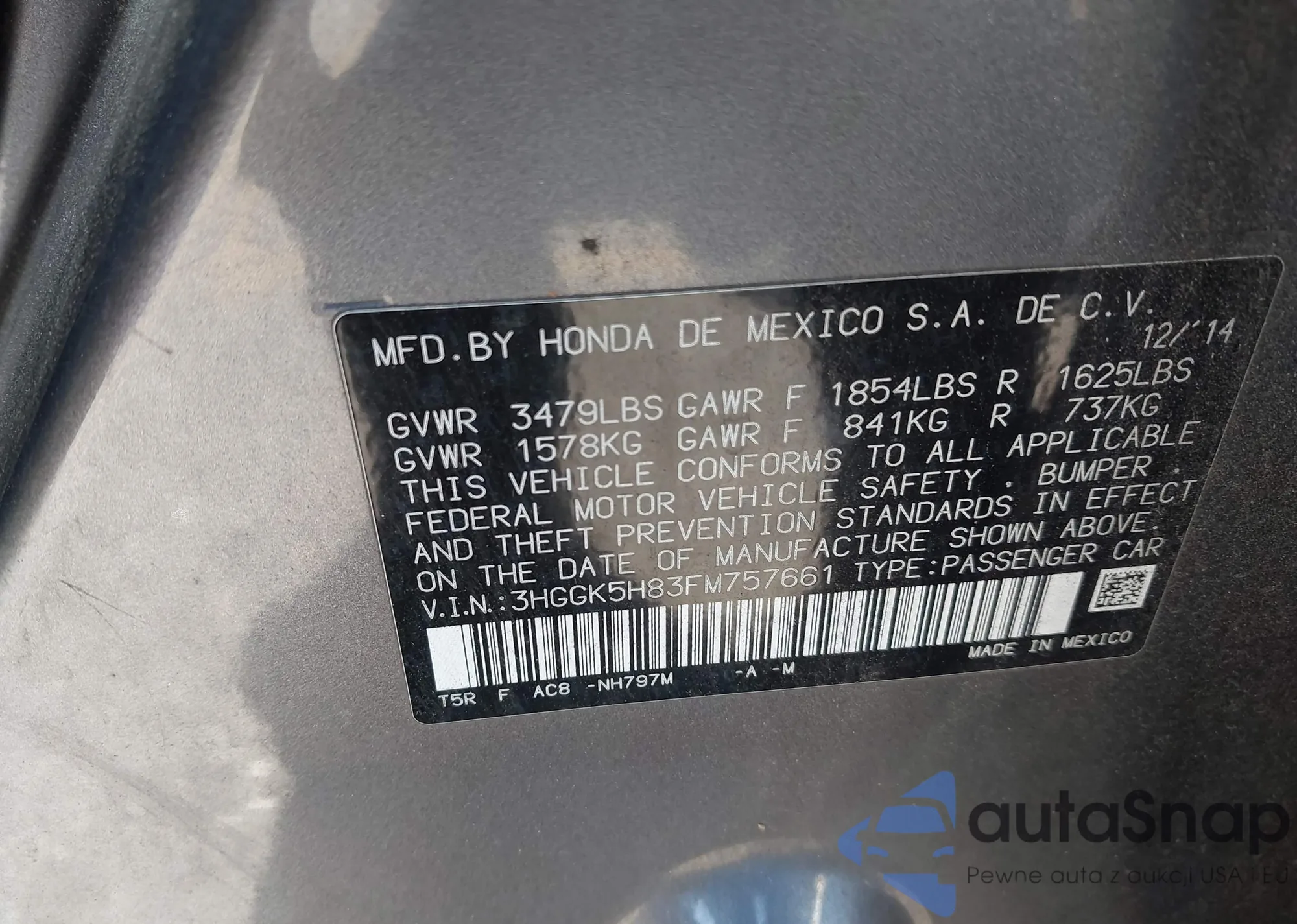 • VIN 3HGGK5H83FM757661