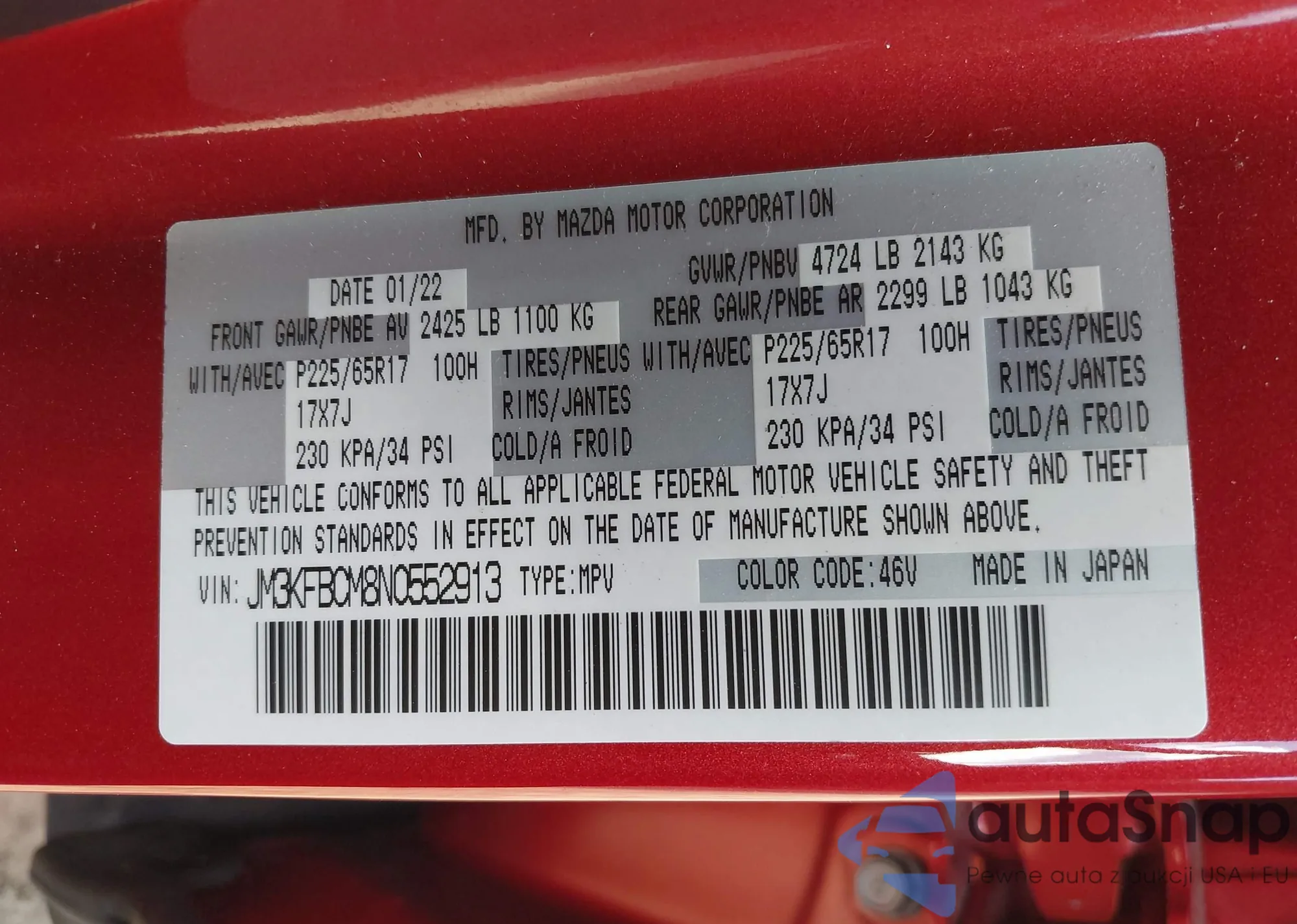 • VIN JM3KFBCM8N0552913