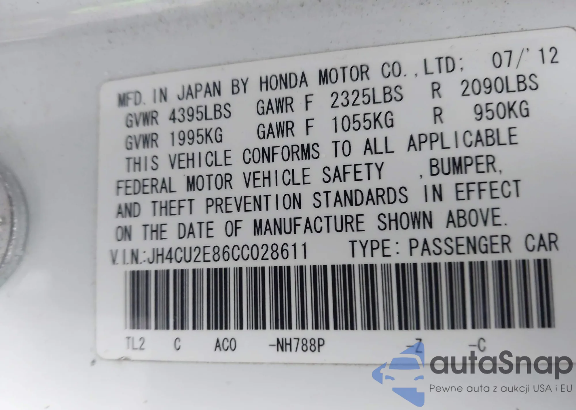 • VIN JH4CU2E86CC028611