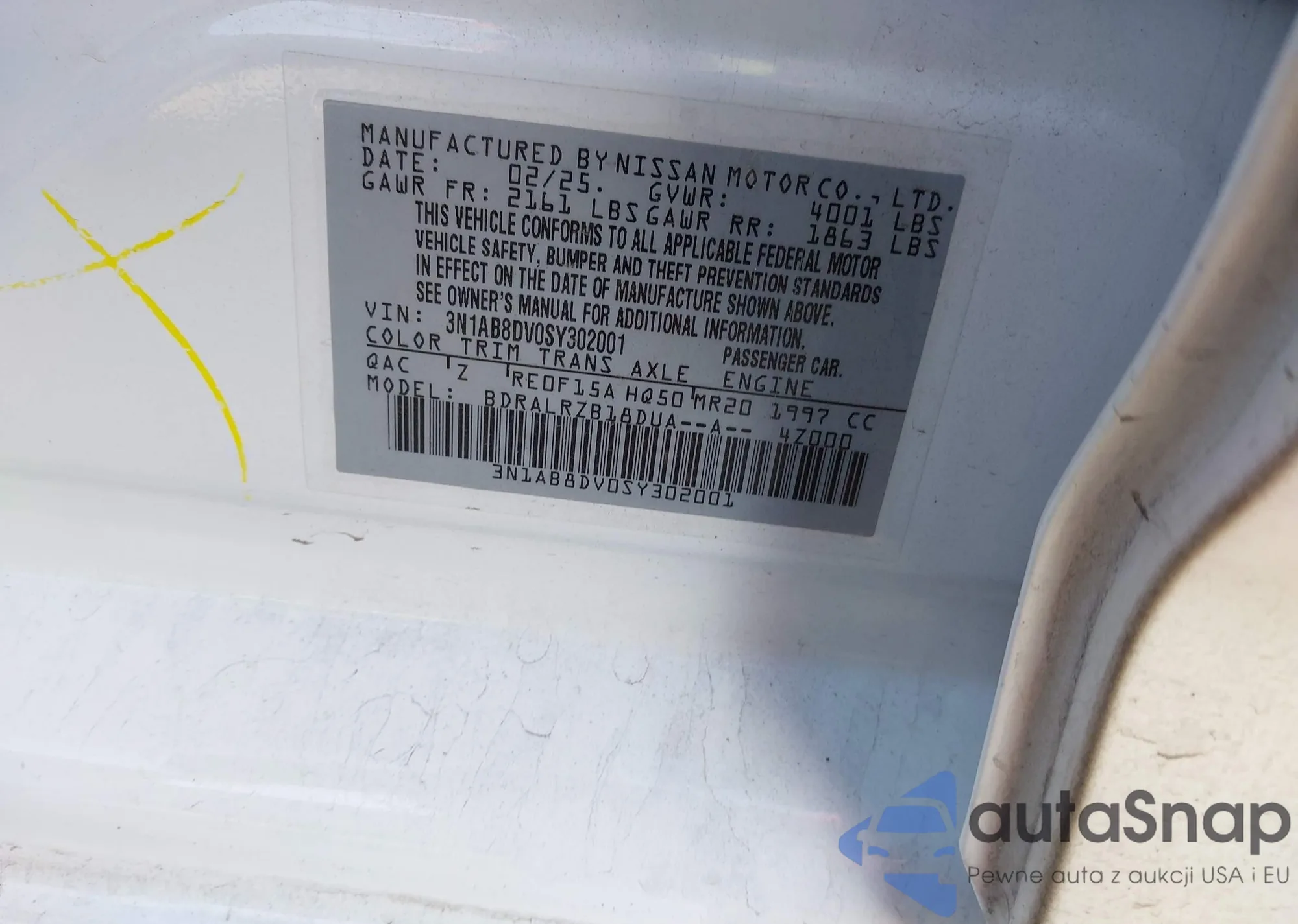 LOT: 43933328 VIN: 3N1AB8DV0SY302001