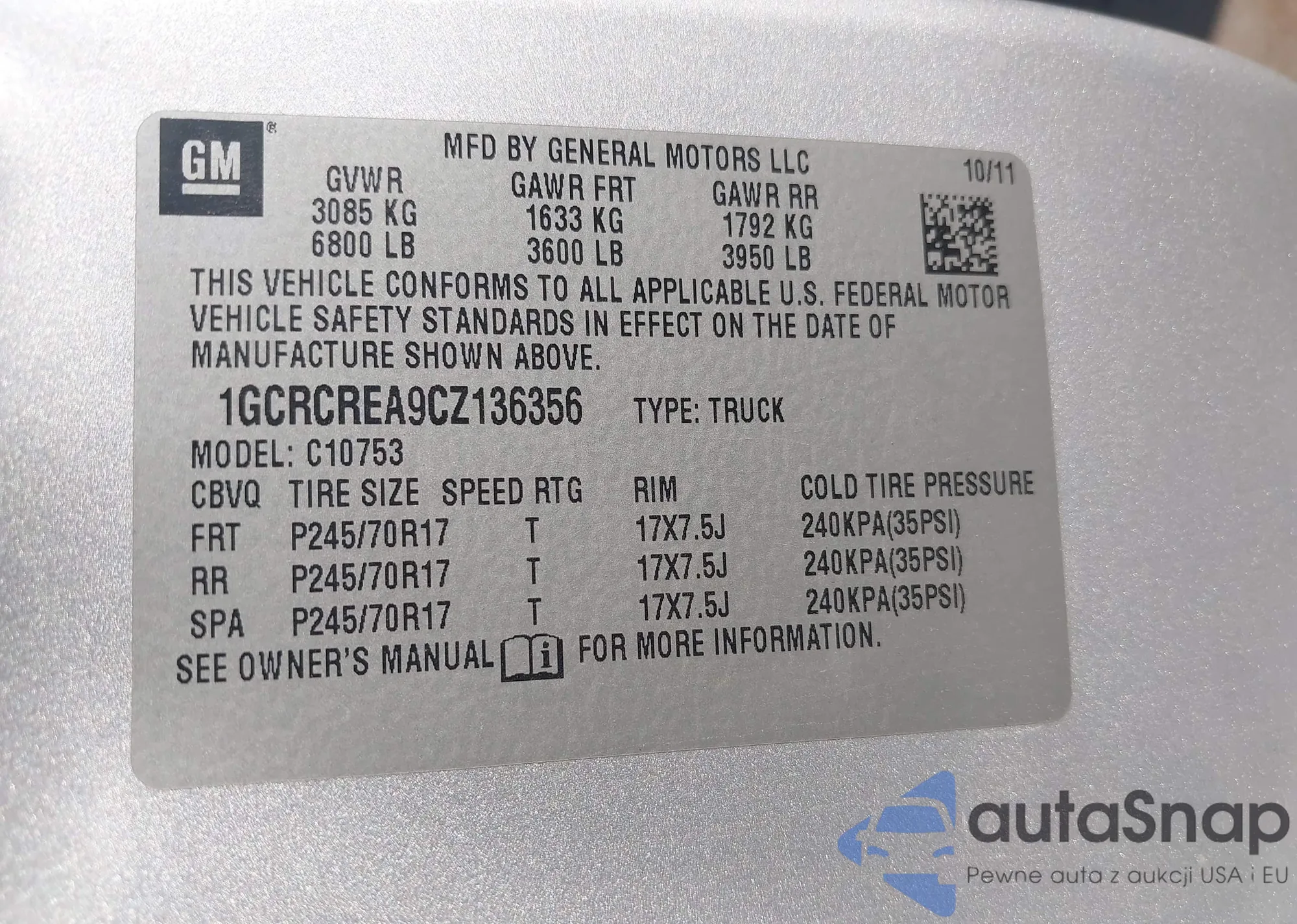 • VIN 1GCRCREA9CZ136356