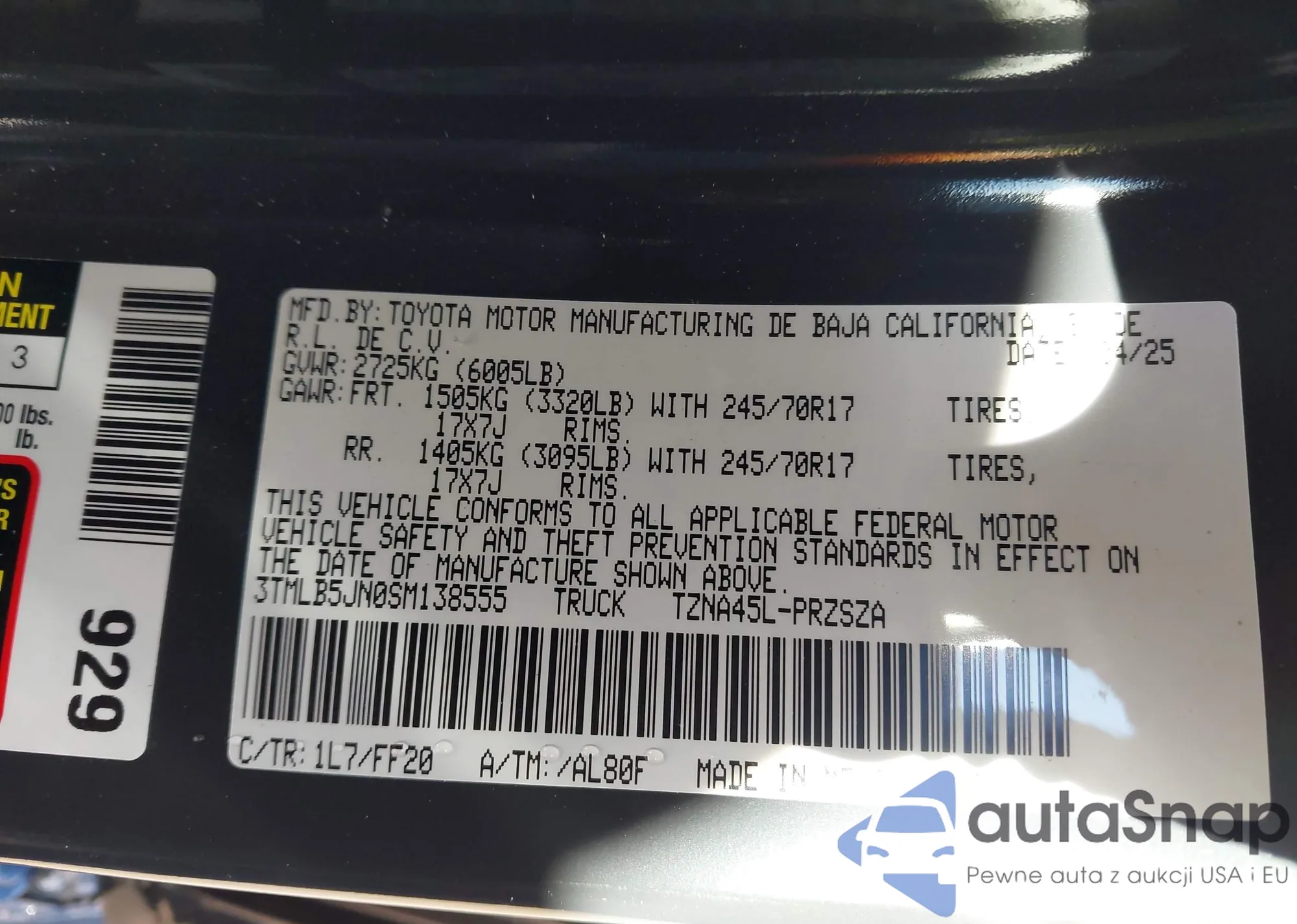 • VIN 3TMLB5JN4SM159327