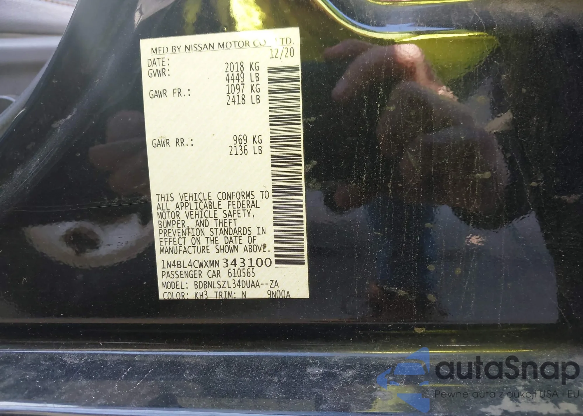 • VIN 3N1AB8DV8RY295793