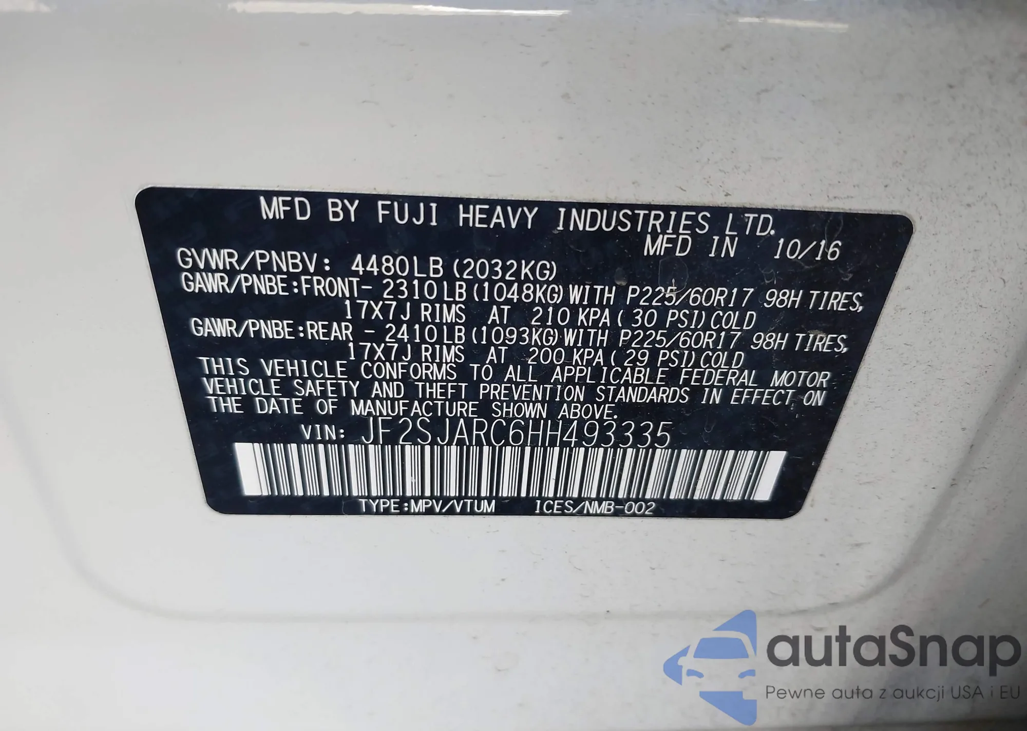 LOT: 43690499 VIN: JHMZC5F11JC007128