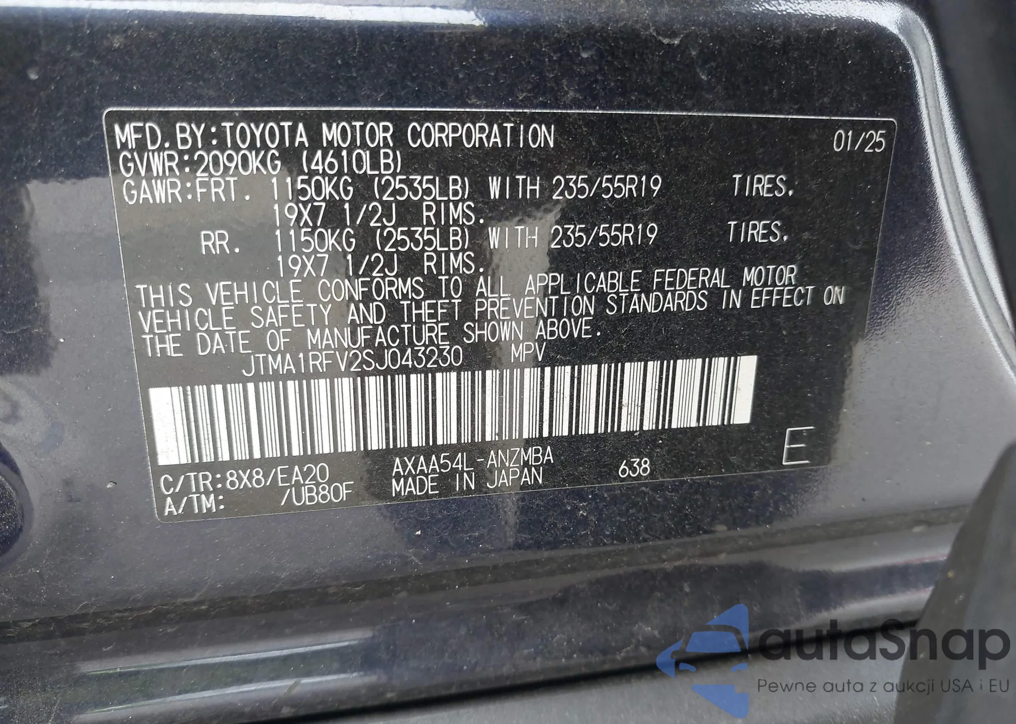 • VIN JTMA1RFV2SJ043230