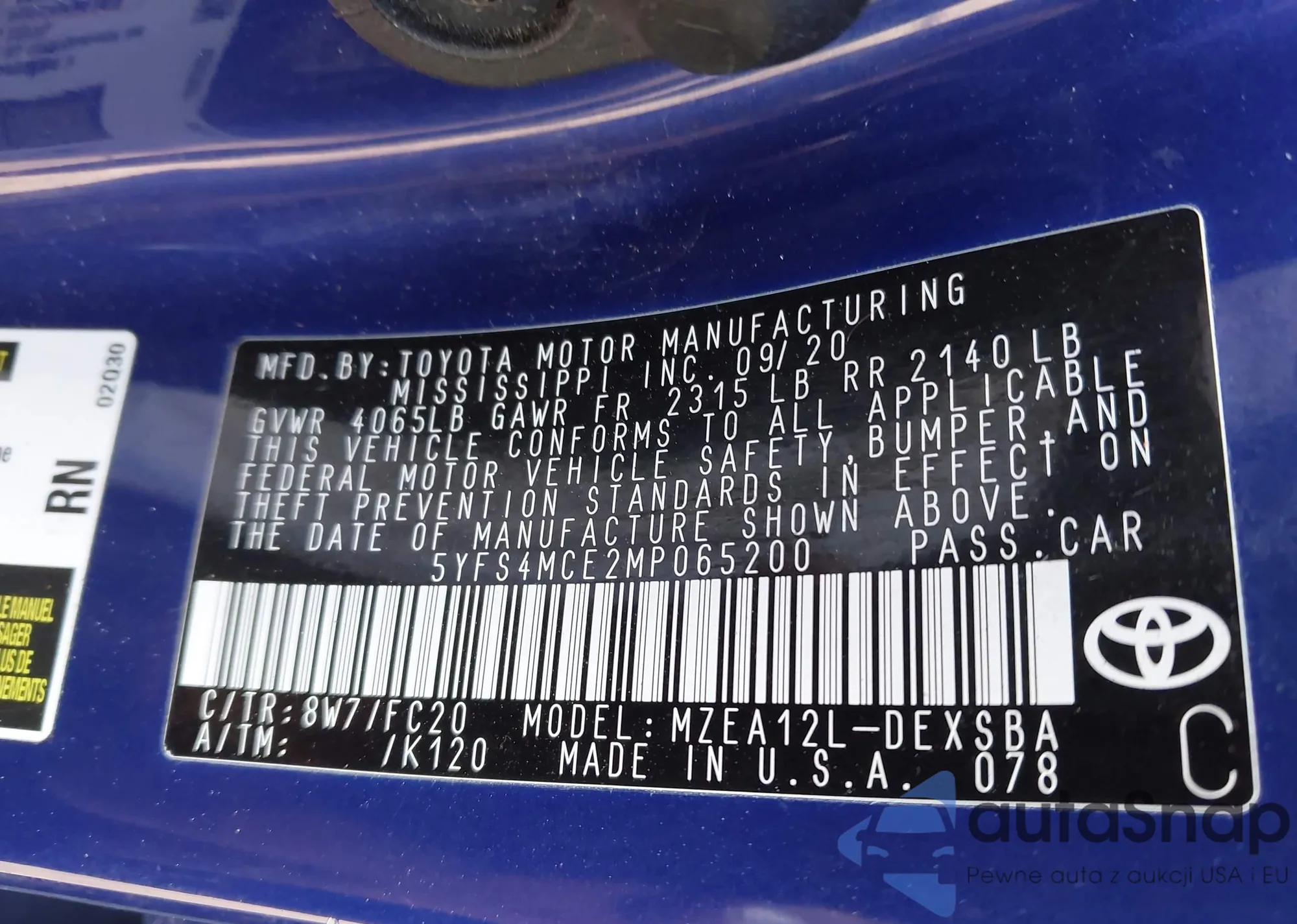 LOT: 43753958 VIN: 5YFS4MCE2MP065200