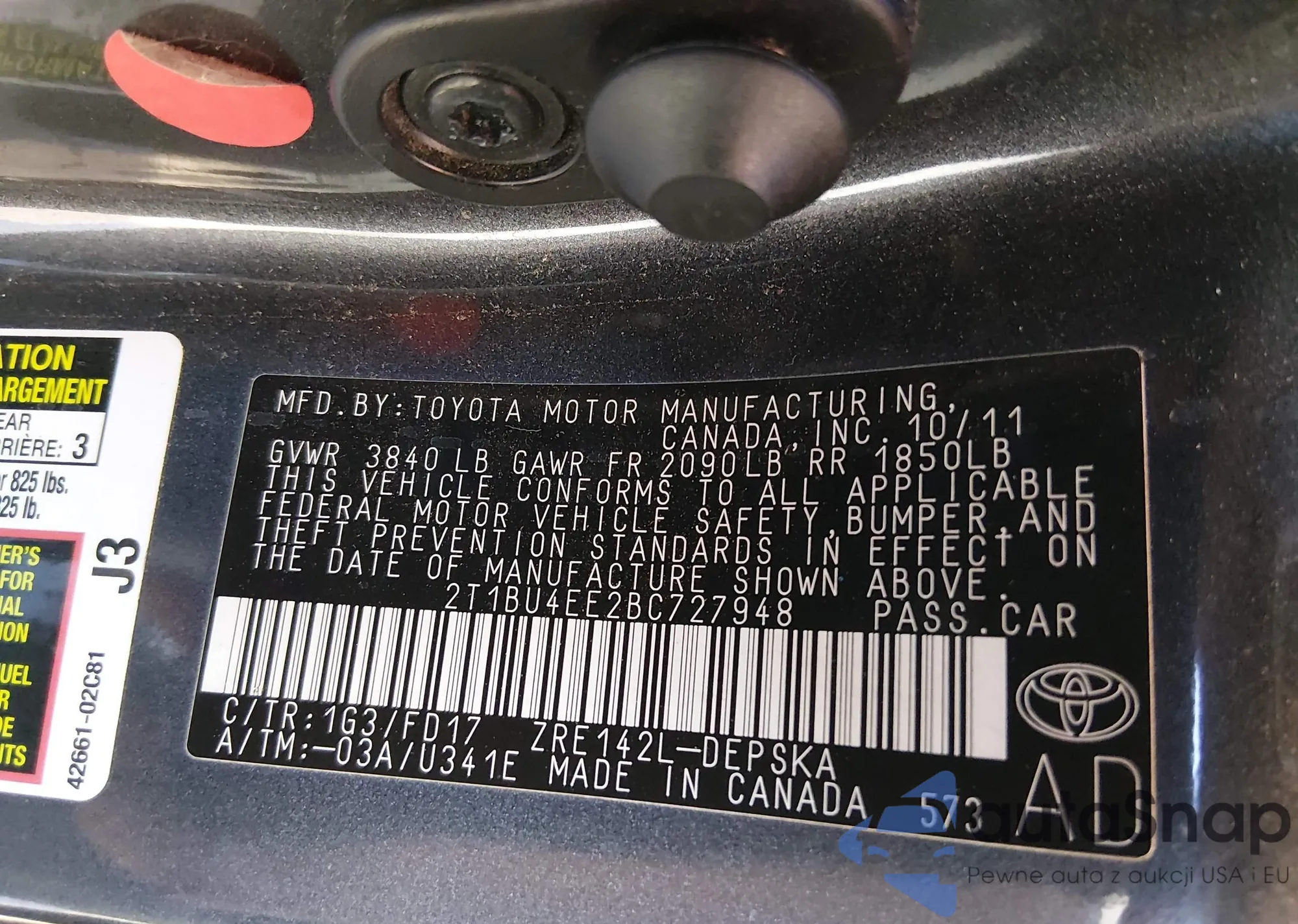 • VIN 2T1BU4EE2BC727948