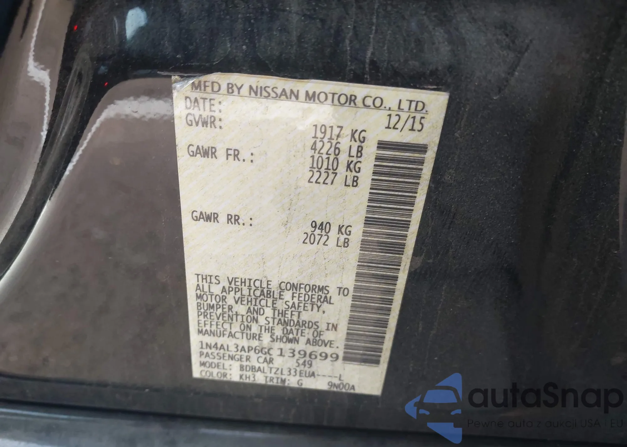 LOT: 43963596 VIN: 1N4AL3AP6GC139699