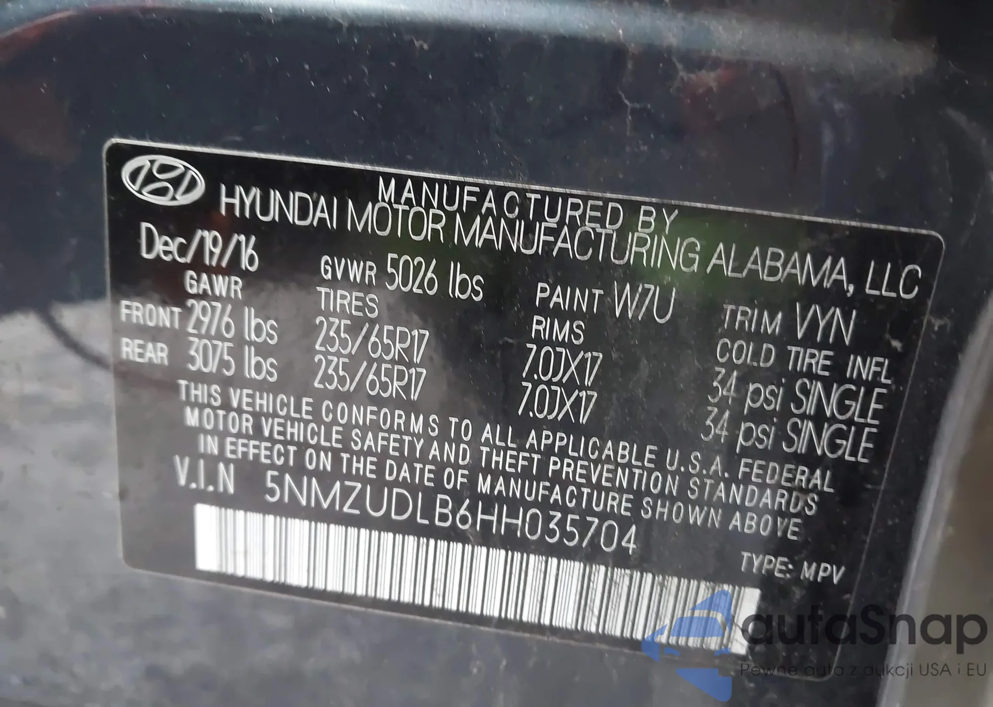 • VIN 5NMZUDLB6HH035704