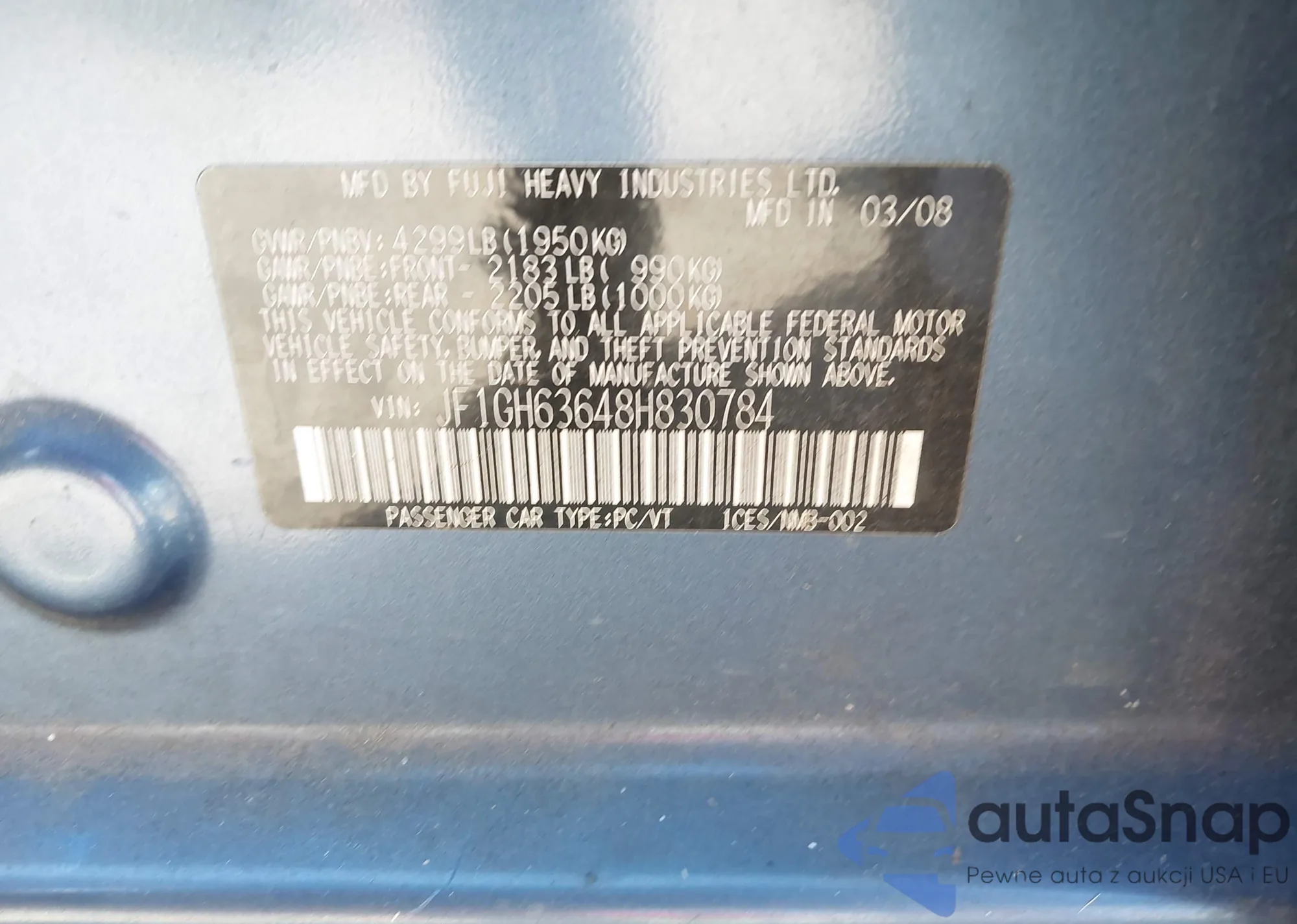 LOT: 43661753 VIN: JF1GH63648H830784