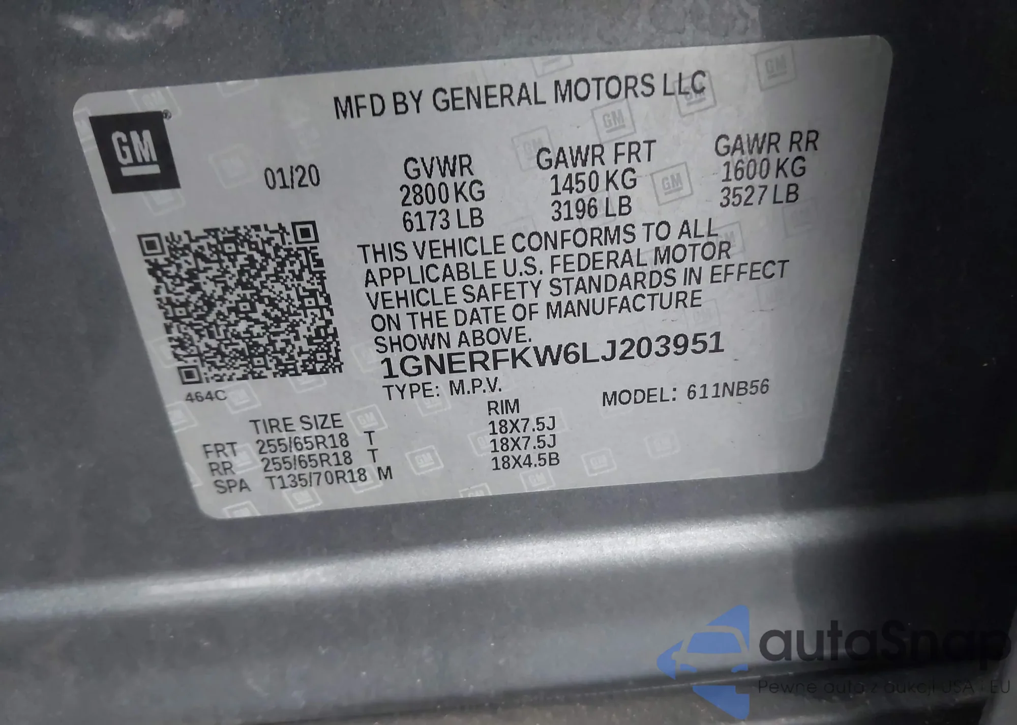 LOT: 43698448 VIN: 1GNERFKW6LJ203951