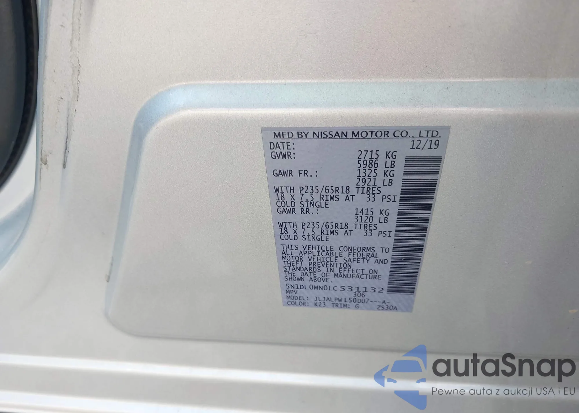 LOT: 43762089 VIN: 5N1AR1NB4CC606944