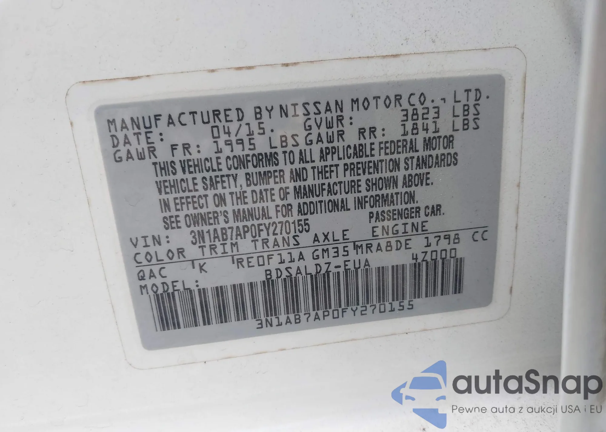 • VIN 1G1PG5SB9F7142328