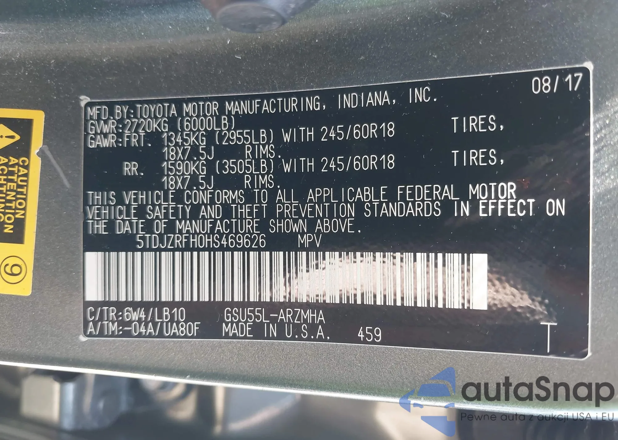 LOT: 42547838 VIN: 5TDJZRFH0HS469626
