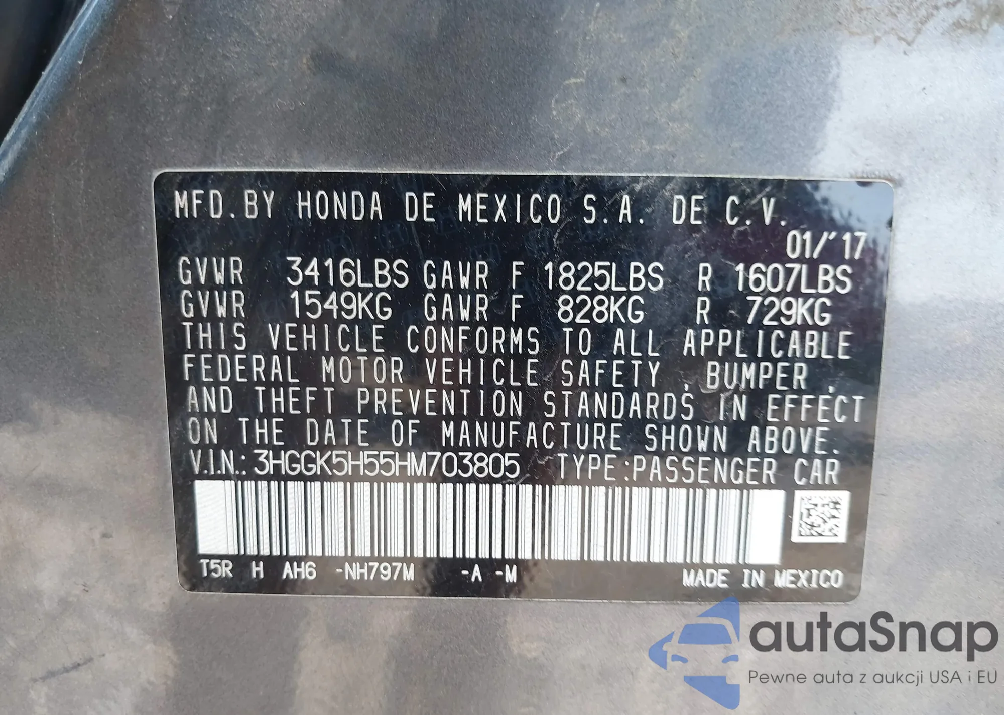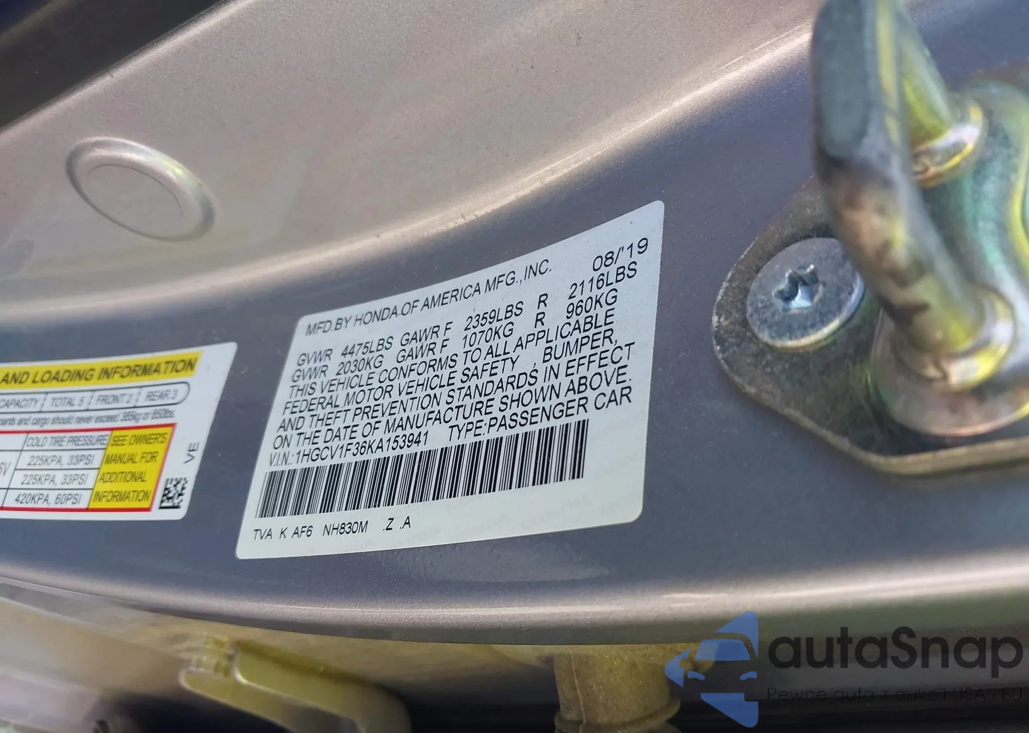 LOT: 43291424 VIN: 1HGCV1F10MA107409