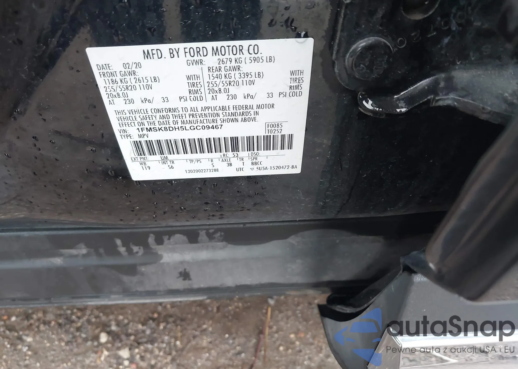 • VIN 1FMSK8DH5LGC09467