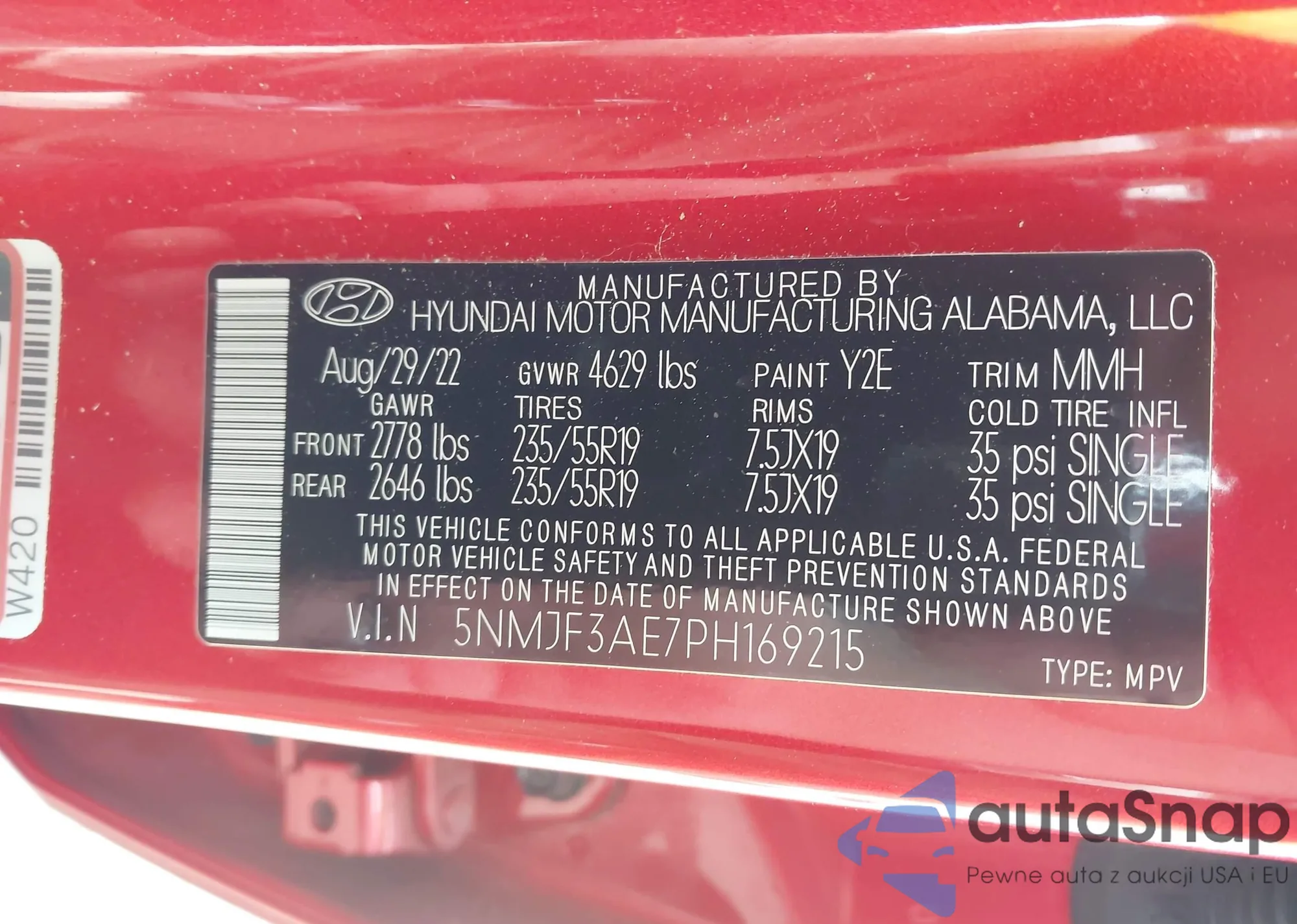 • VIN 5NMJF3AE7PH169215