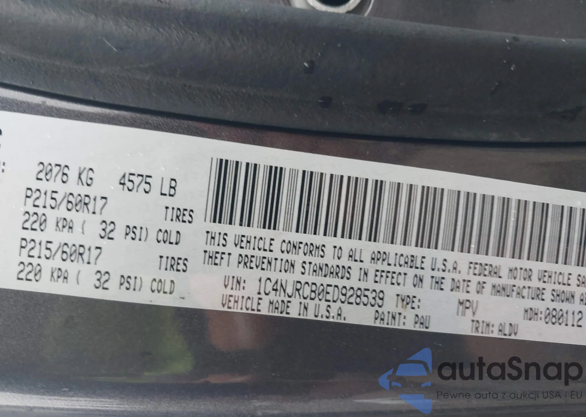 LOT: 43298736 VIN: 1C4NJRCB0ED928539