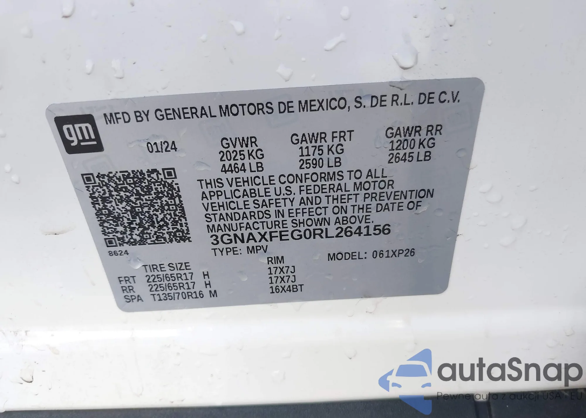 LOT: 43308443 VIN: 3GNAXFEG0RL264156