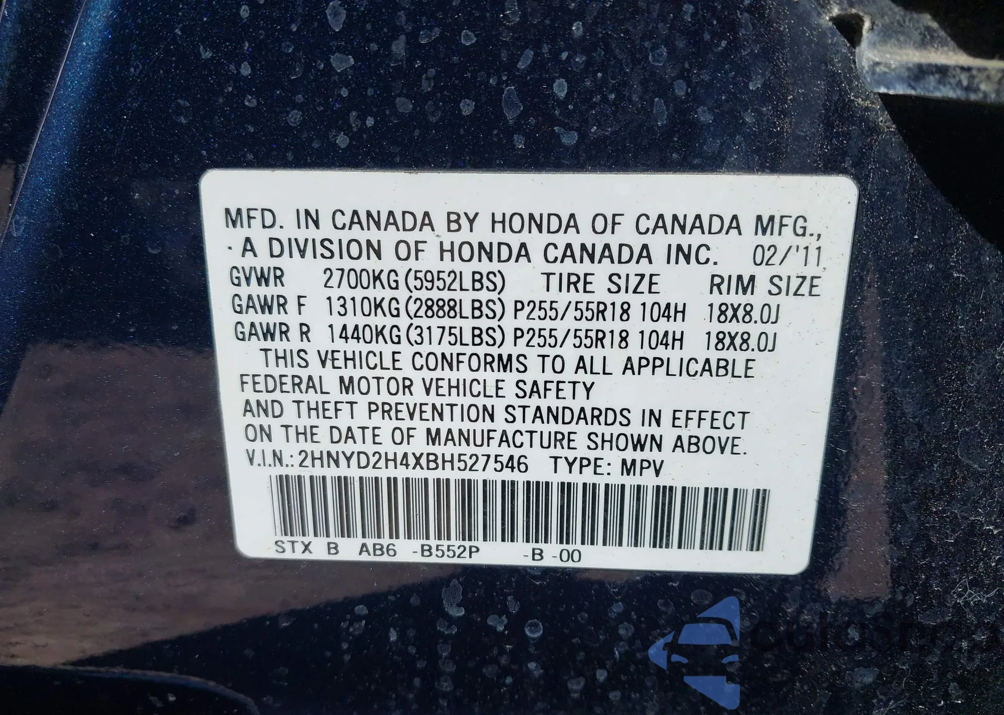• VIN 2HKRW5H31JH409808