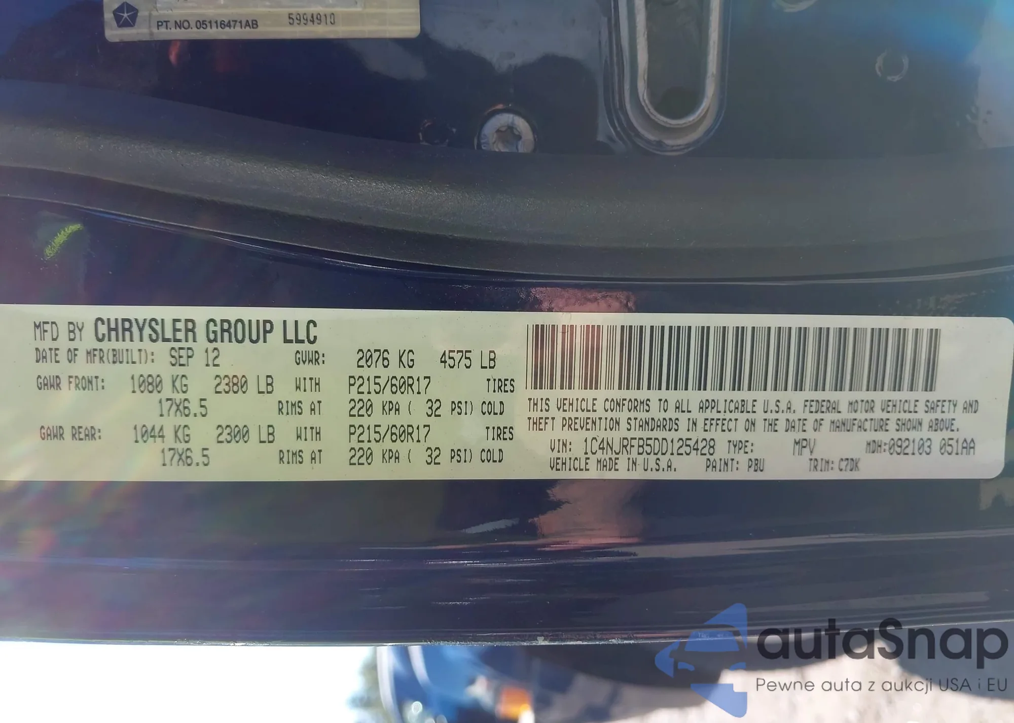 LOT: 43349526 VIN: 1C4NJRFB5DD125428
