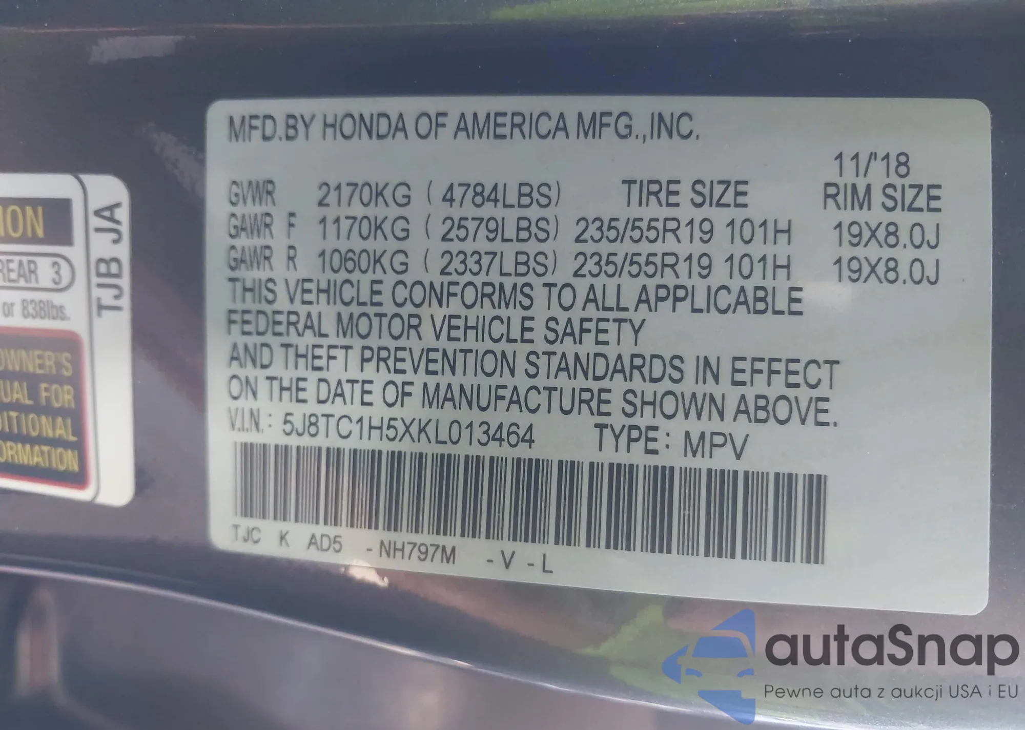 • VIN 5J8TC1H5XKL013464