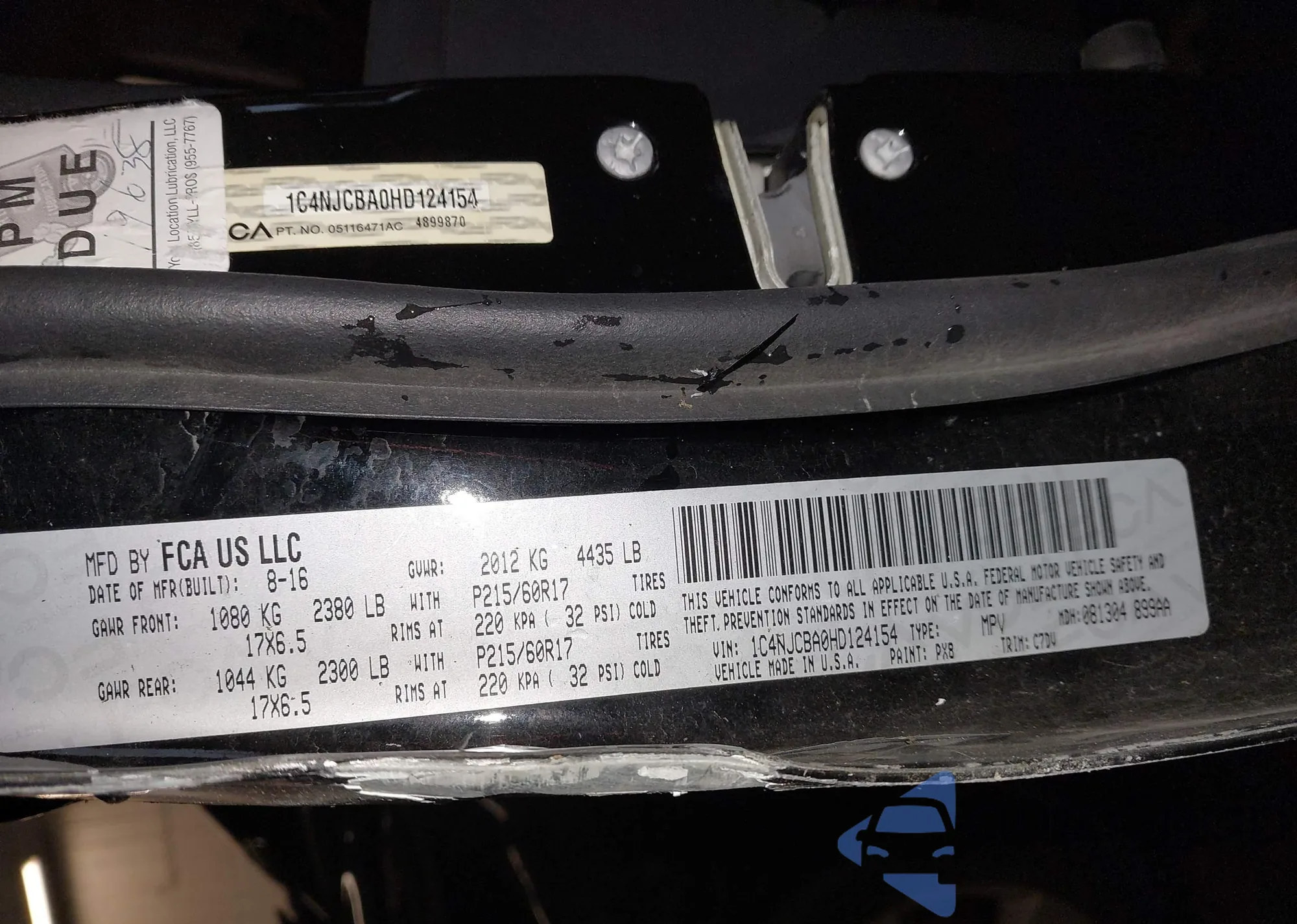 • VIN 1C4NJCBA0HD124154