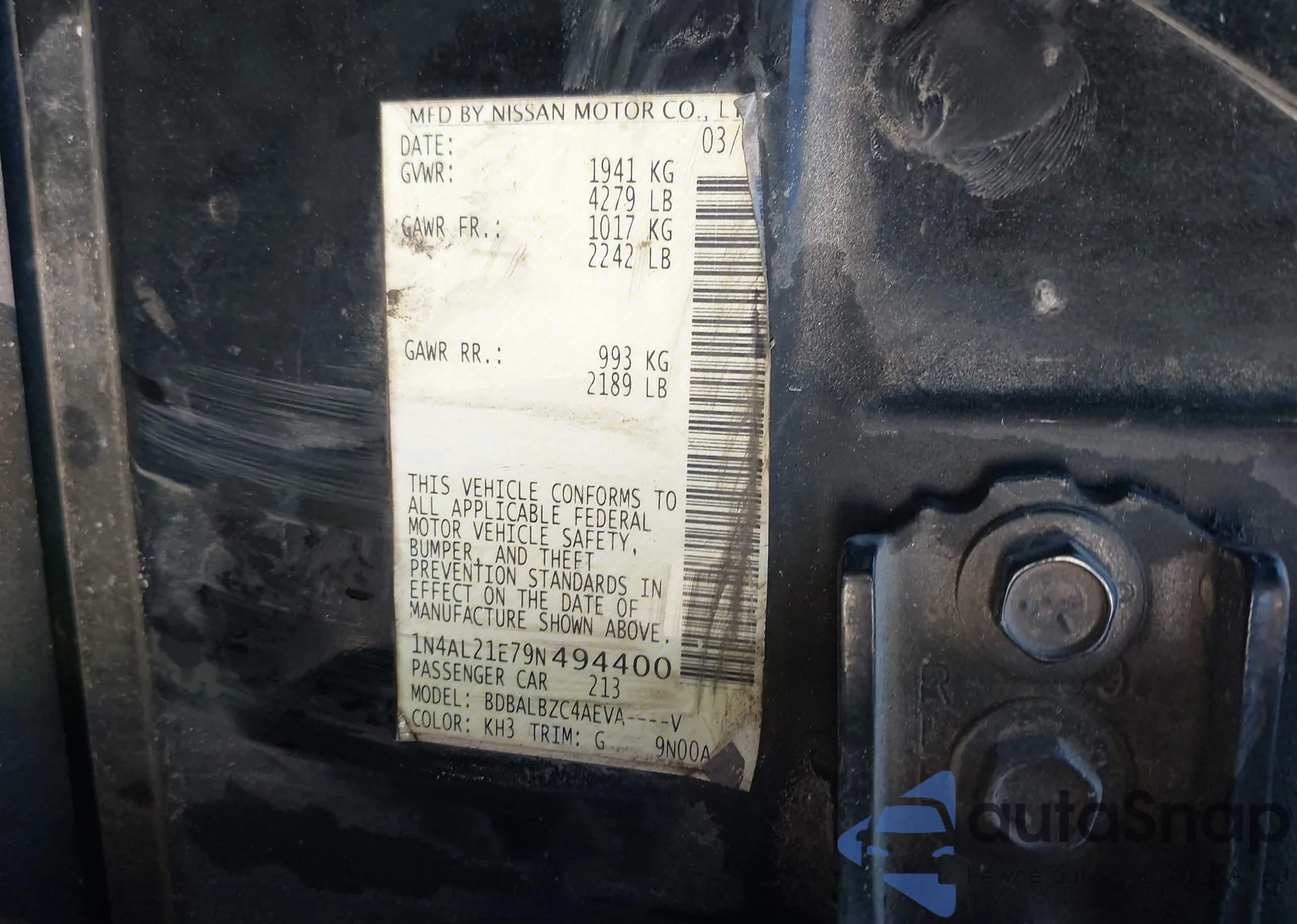 • VIN 4T1FZ1AK3NU070657