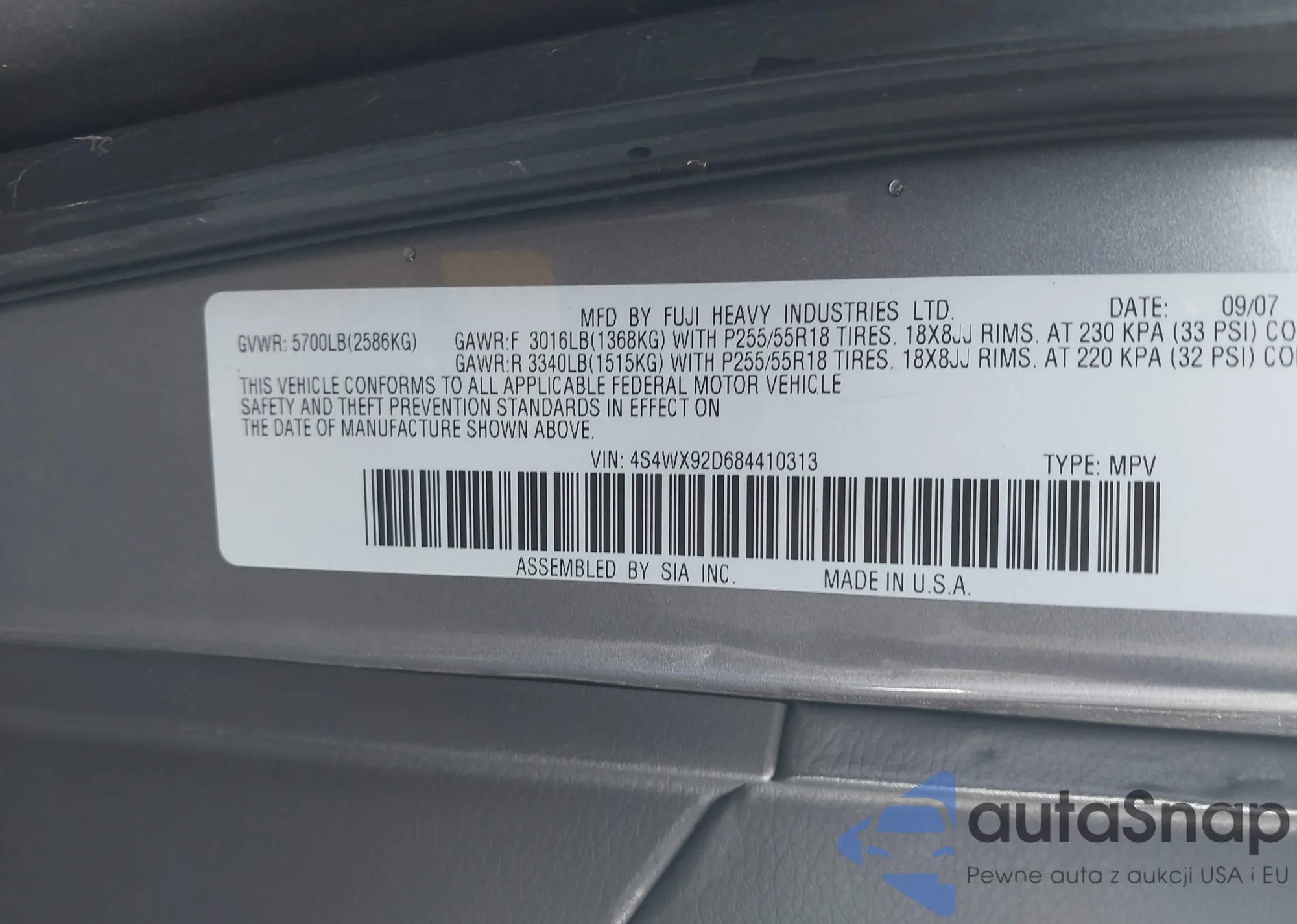 • VIN 2FMDK46C57BA73342
