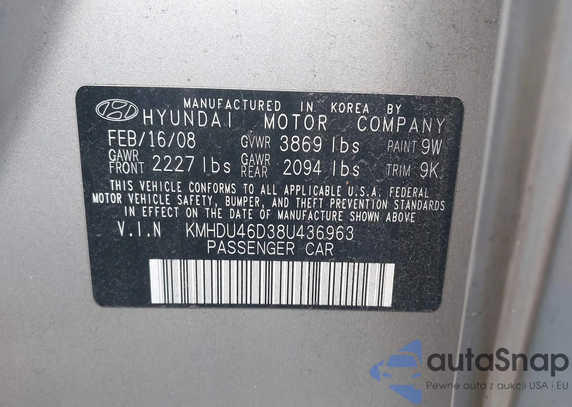 • VIN KMHDU46D38U436963