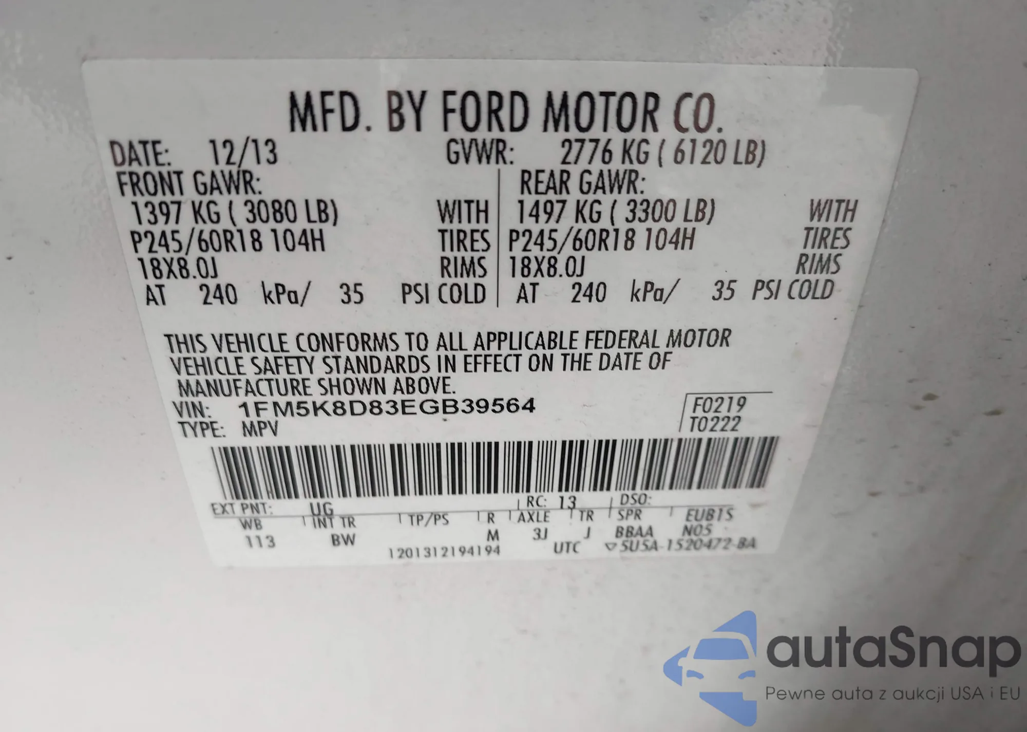 • VIN 1FM5K8D83EGB39564