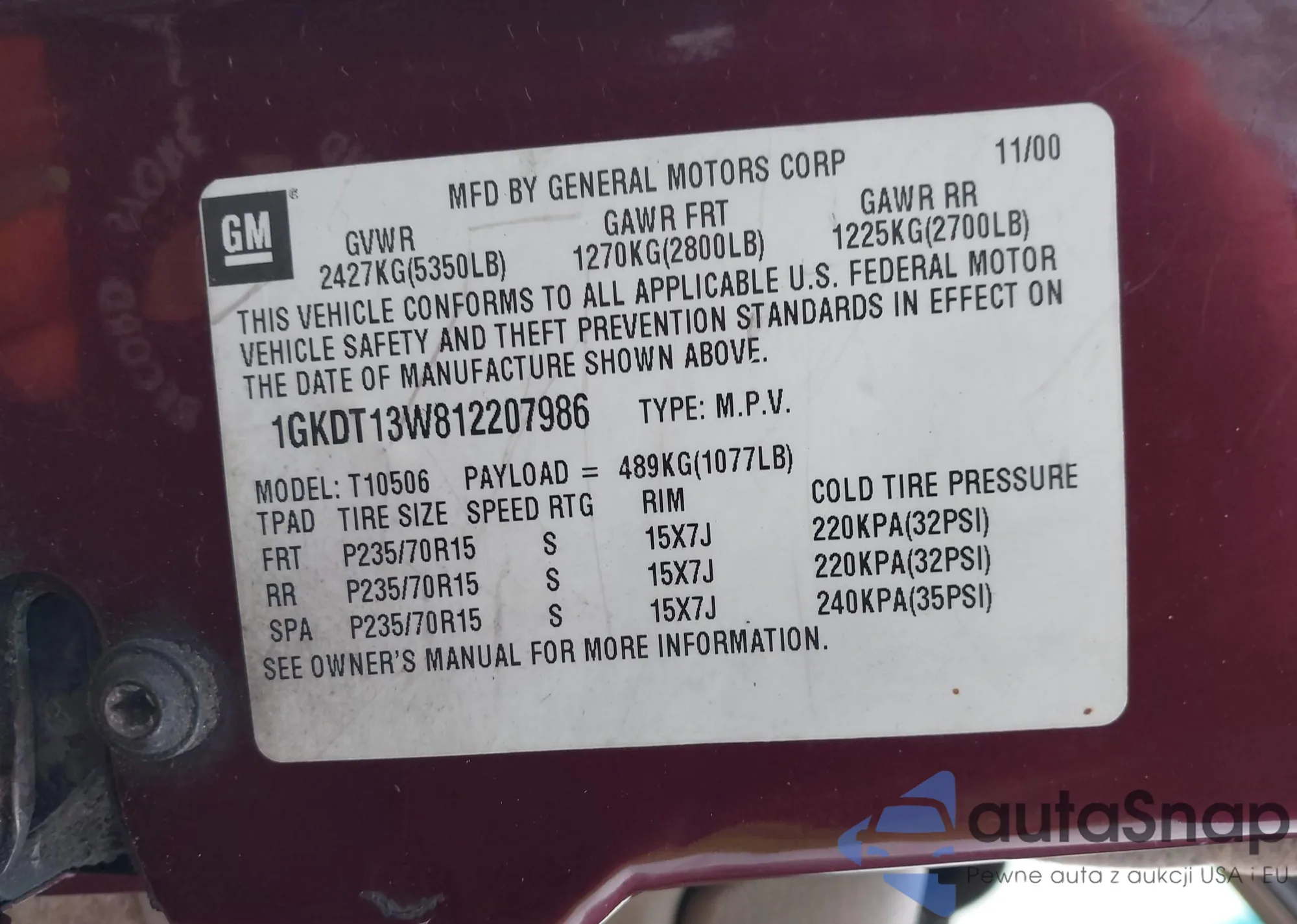 LOT: 43770153 VIN: 1GKDT13W812207986