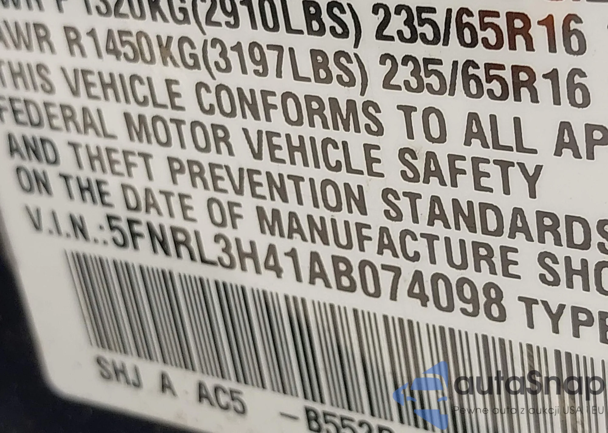 • VIN 5FNRL5H42DB061232