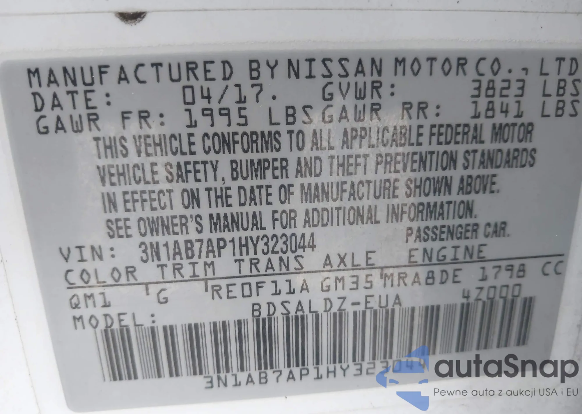 • VIN 3N1AB7AP1HY323044