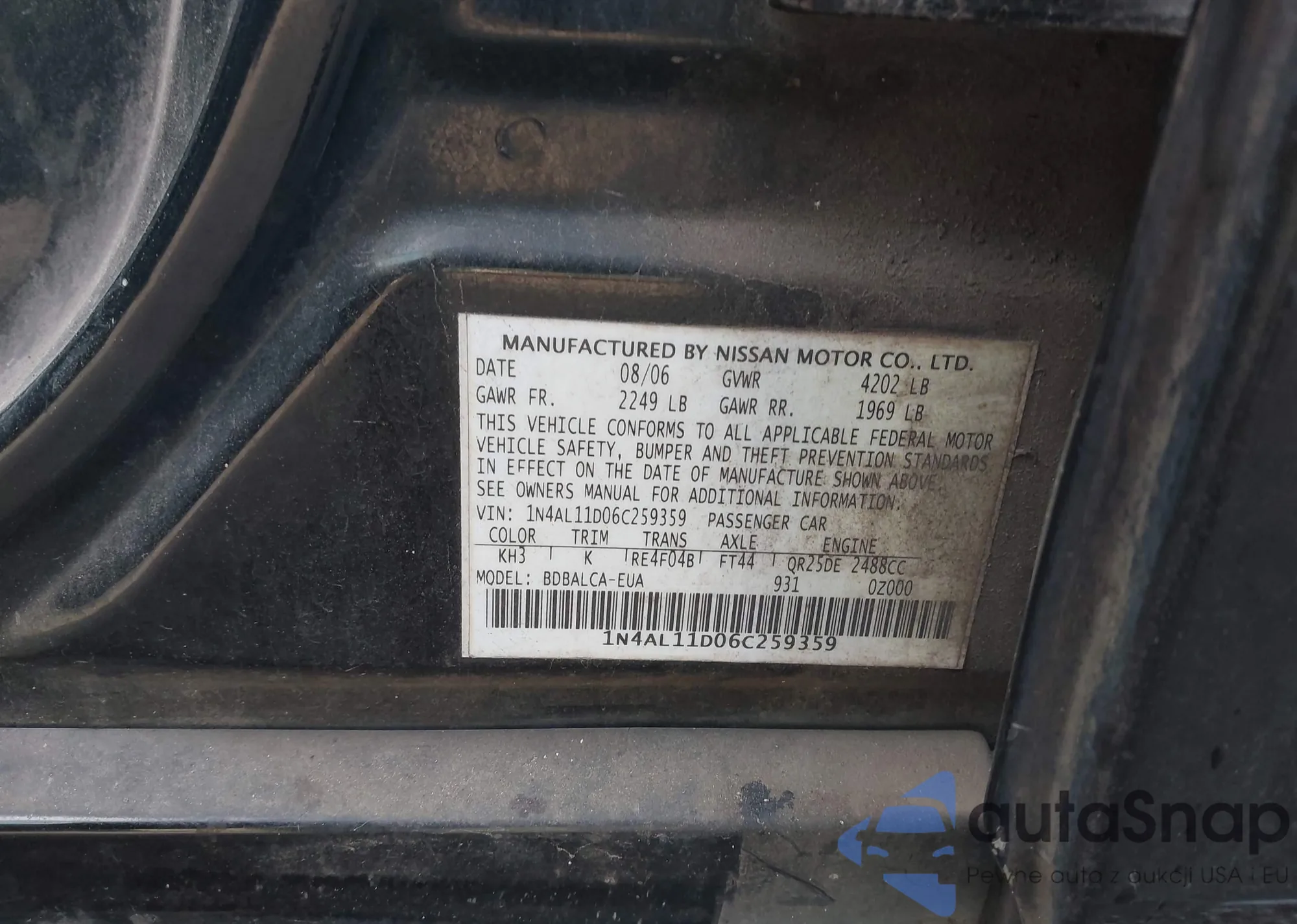 • VIN 1N4AL11D06C259359