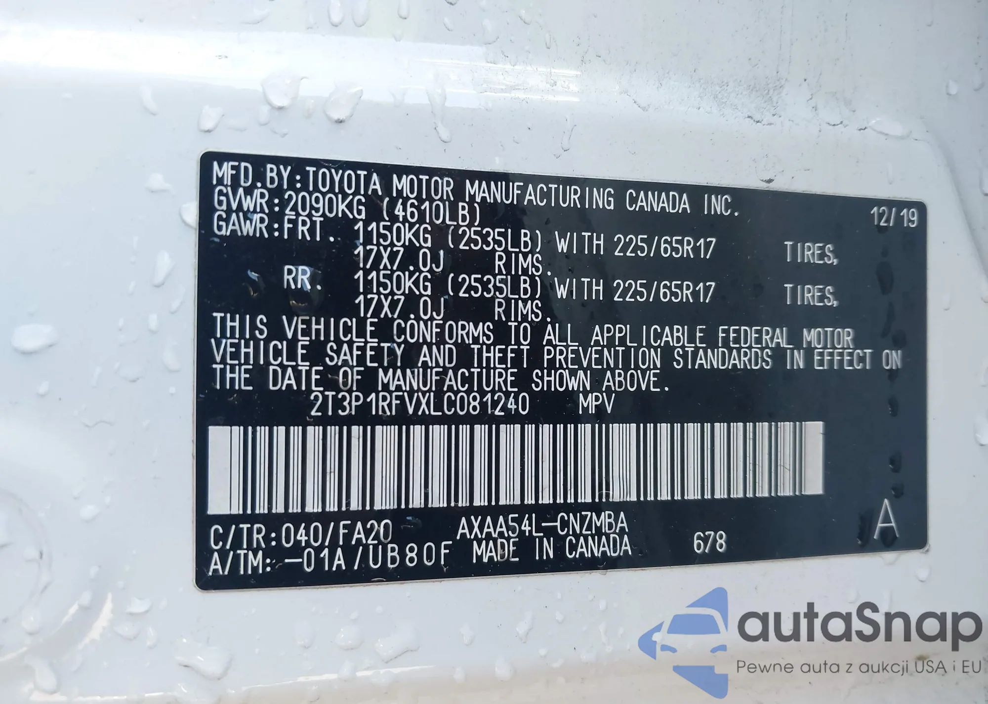 LOT: 43912298 VIN: WP1AG2A55JLB61321