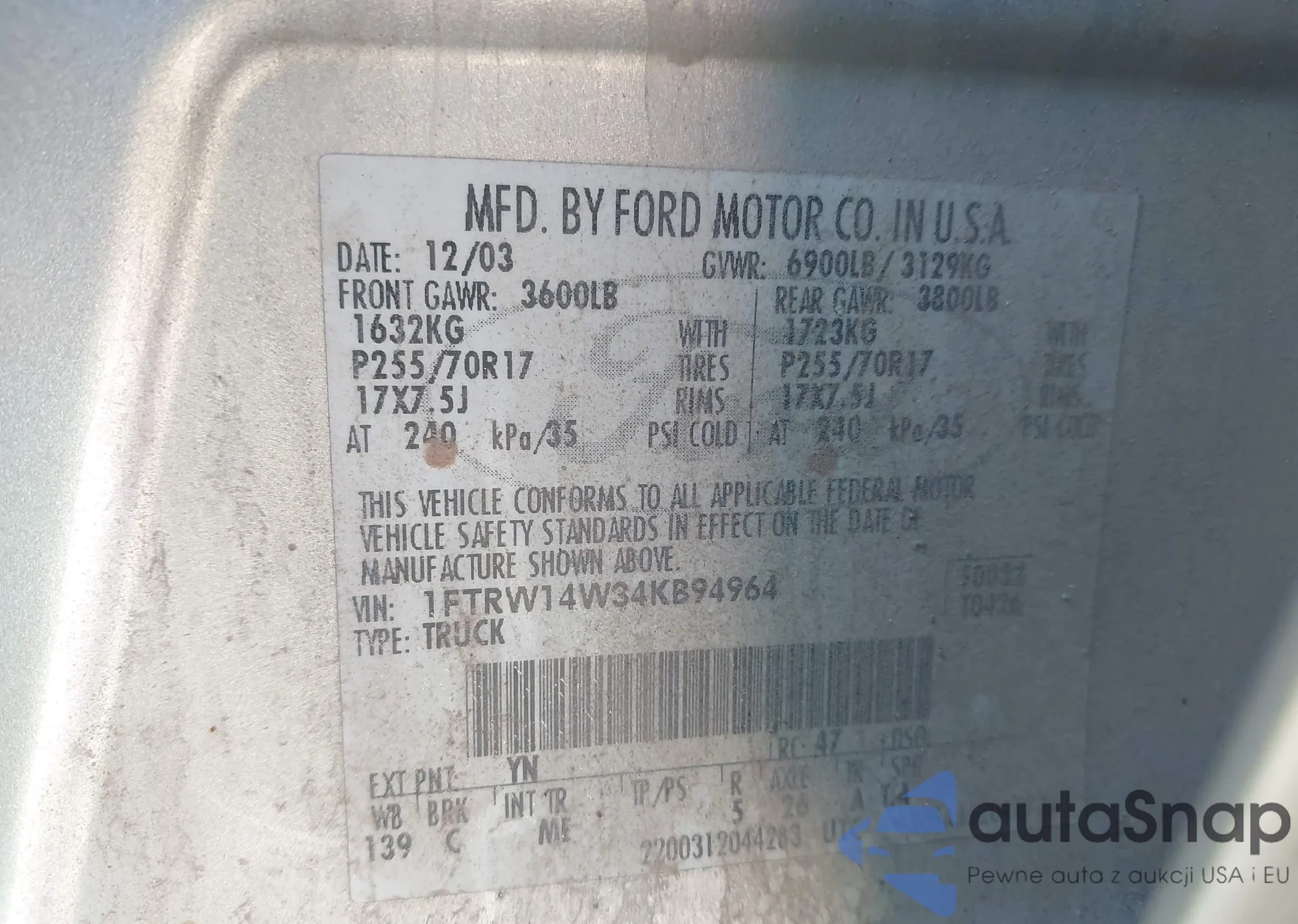 LOT: 43887095 VIN: 5TFDW58139X085690
