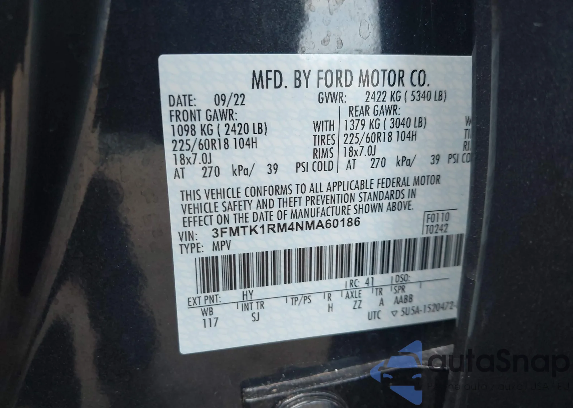 • VIN 3FMTK1RM4NMA60186