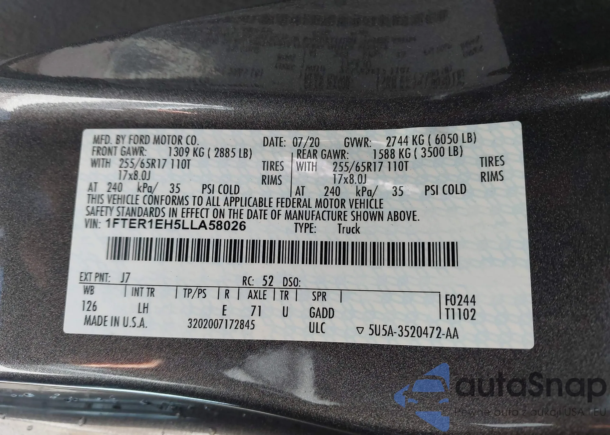 • VIN 1FTER1EH5LLA58026