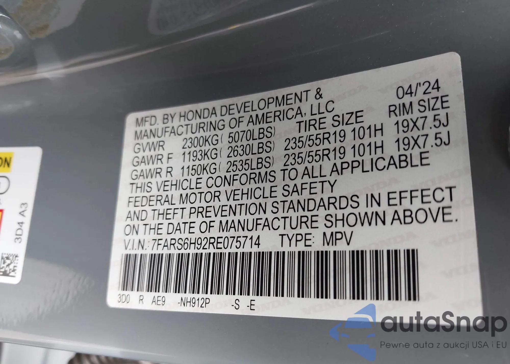 • VIN 7FARS6H92RE075714