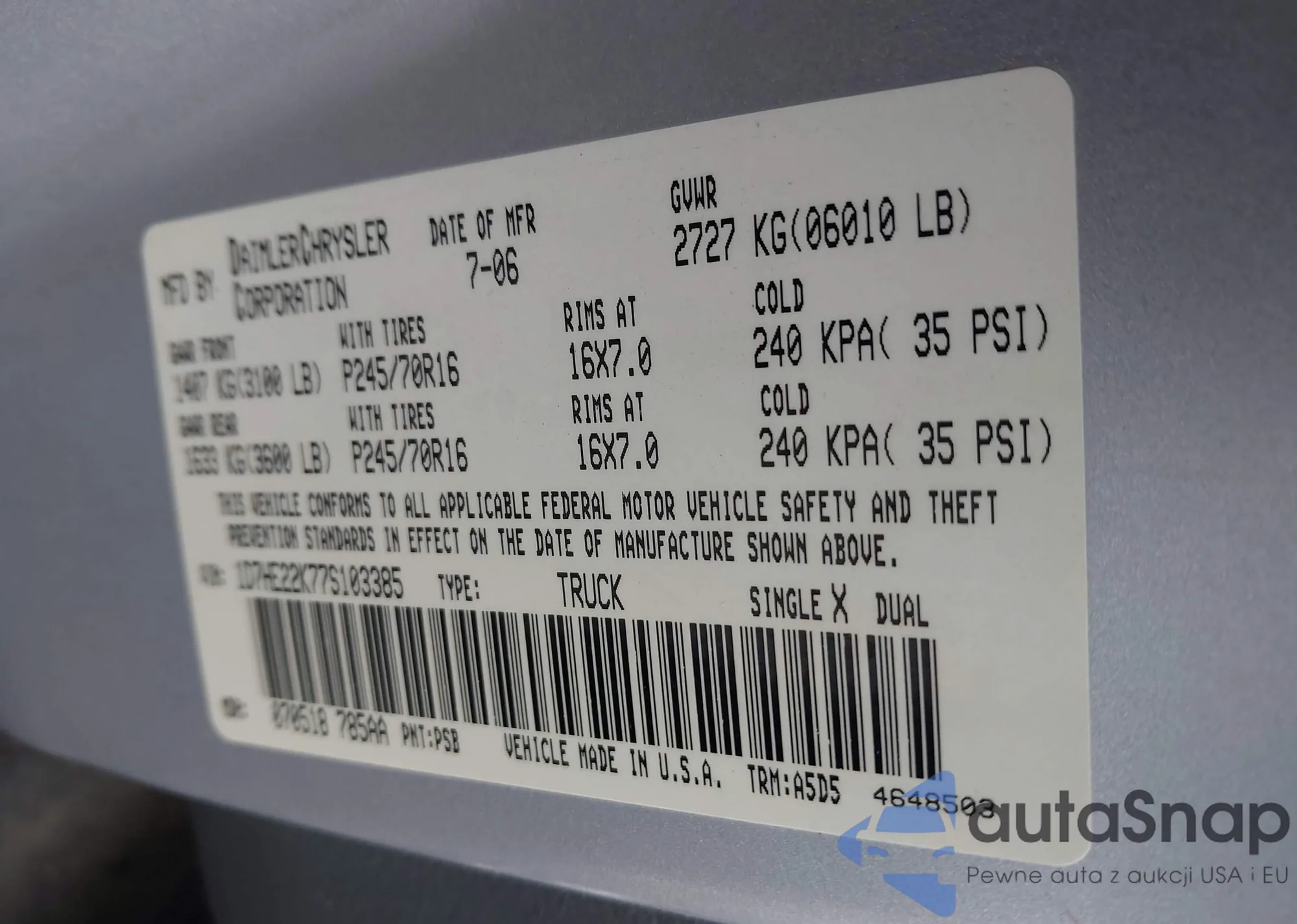 • VIN 1D7HE22K77S103385