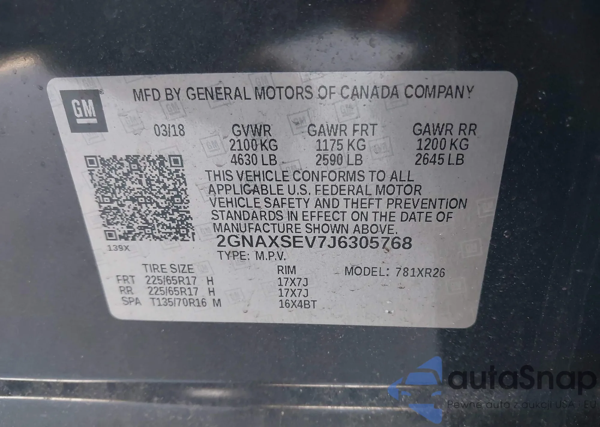 LOT: 43490079 VIN: 2GNAXSEV7J6305768