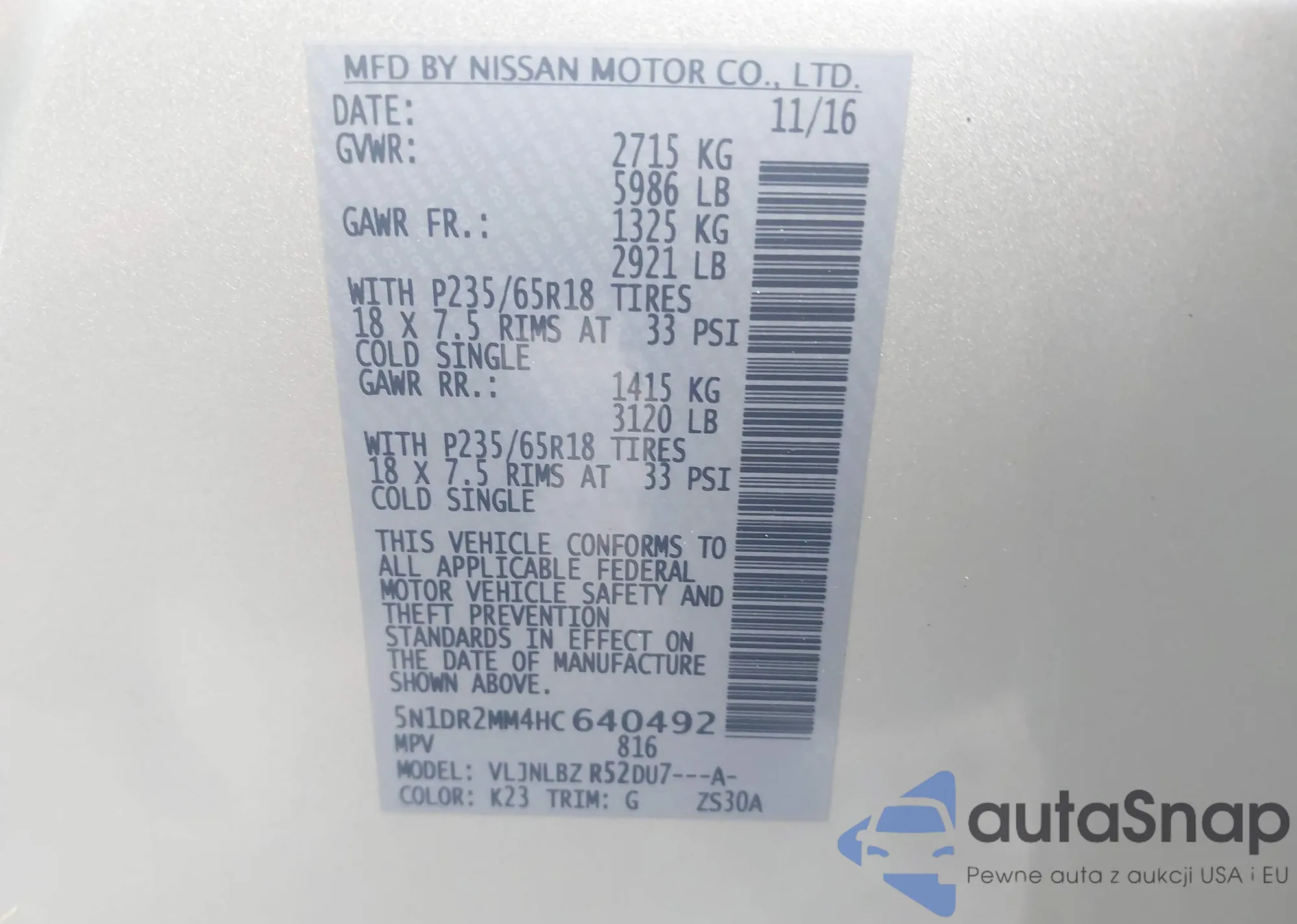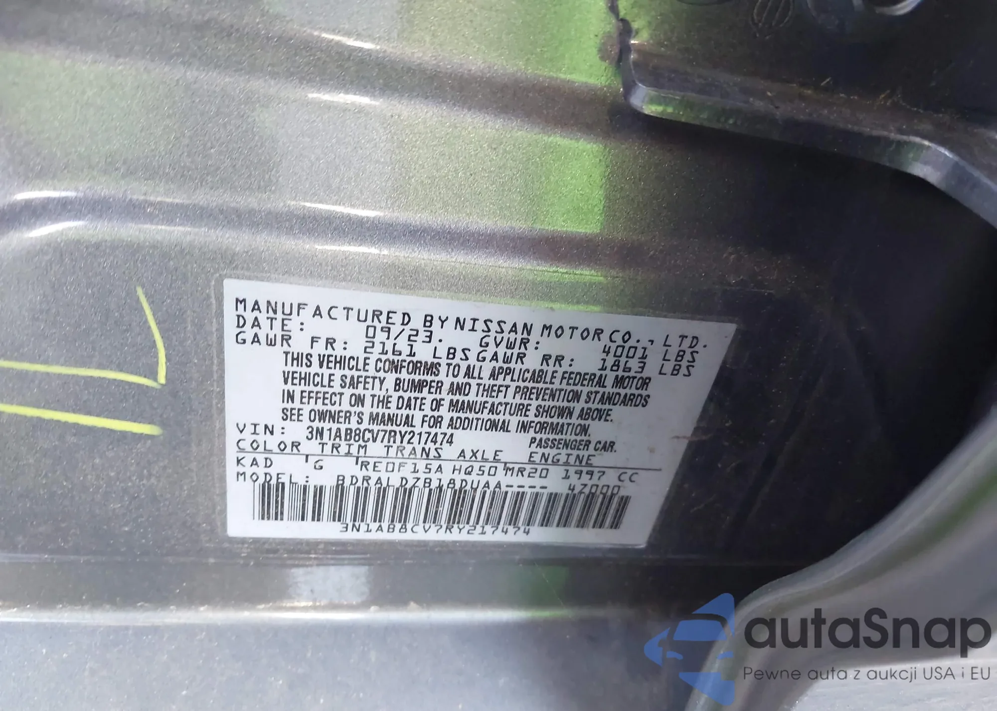 • VIN 3N1AB8CV7RY217474