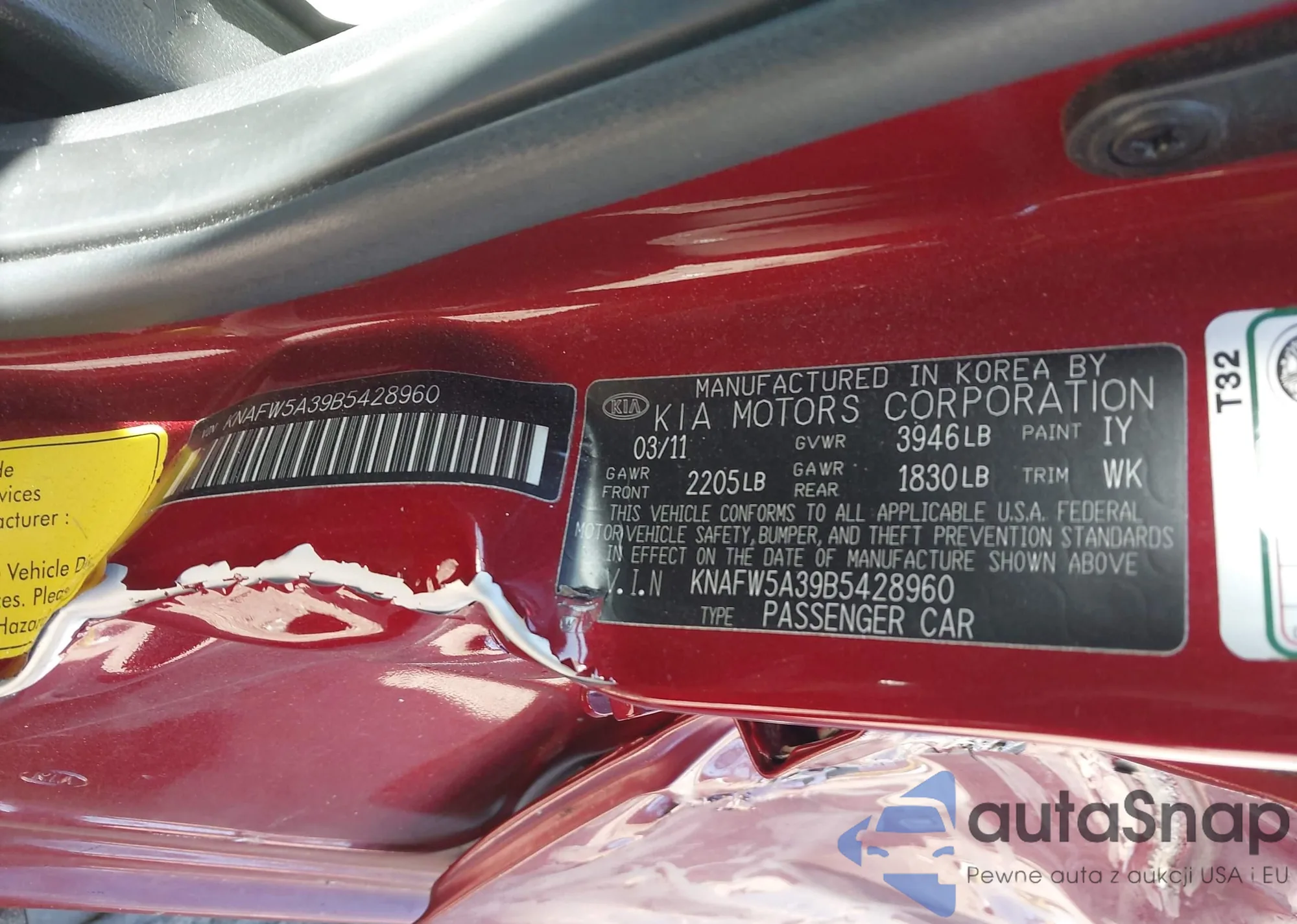 LOT: 43691372 VIN: KNAFW5A39B5428960