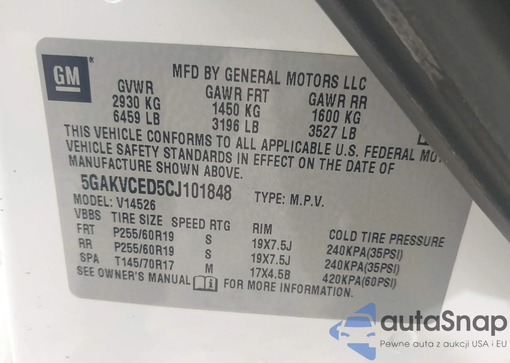 • VIN 5GAKVCED5CJ101848