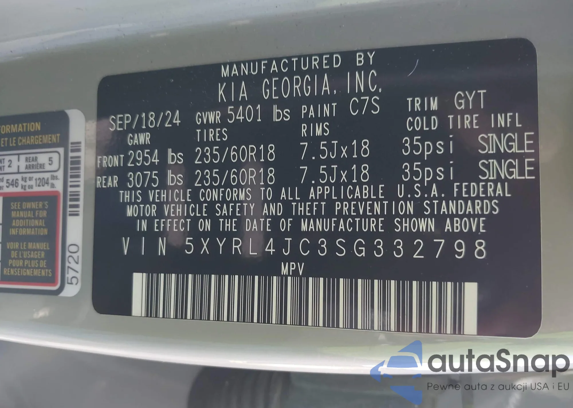 • VIN 5XYRL4JC3SG332798
