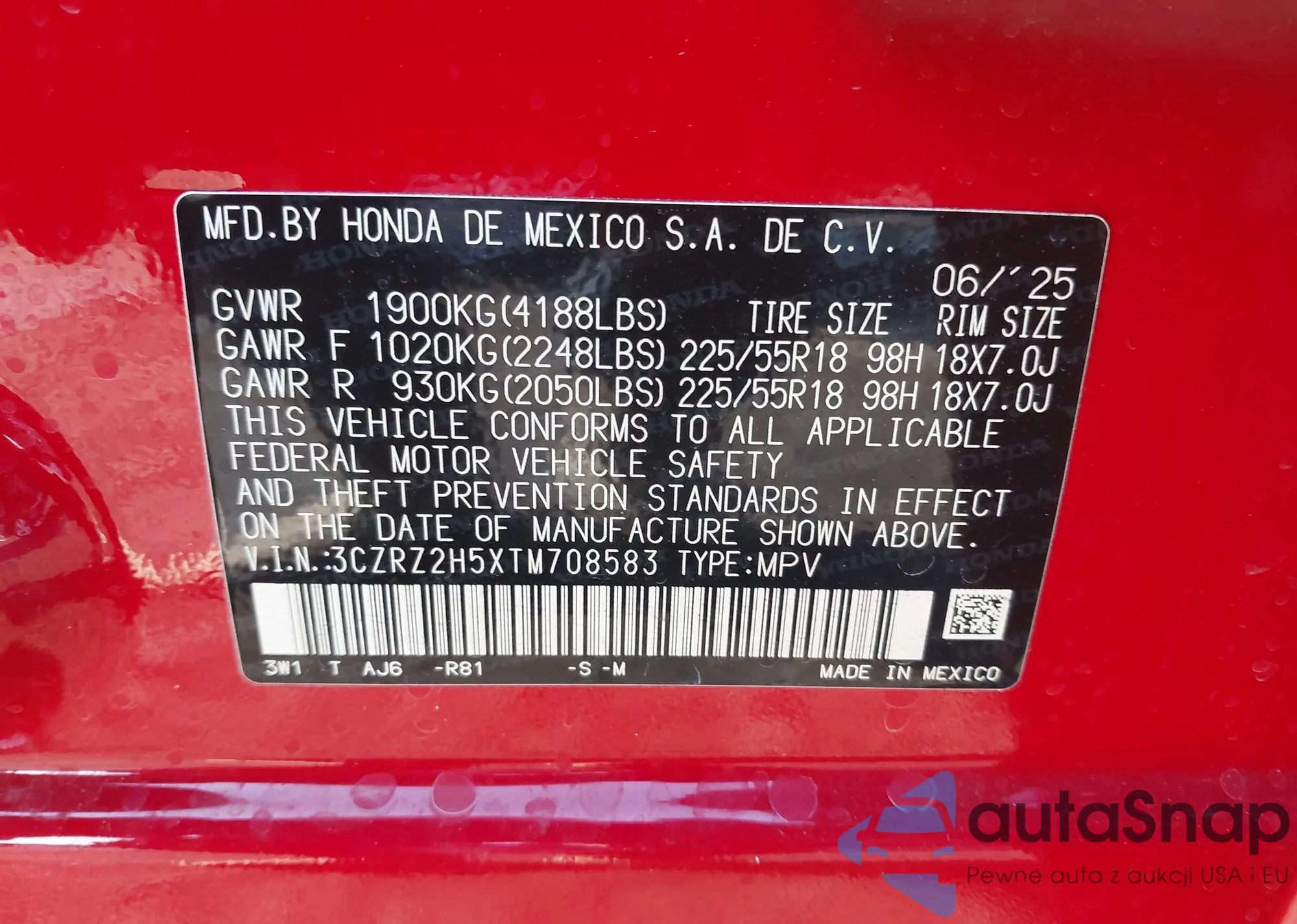 • VIN 3CZRZ2H5XTM708583